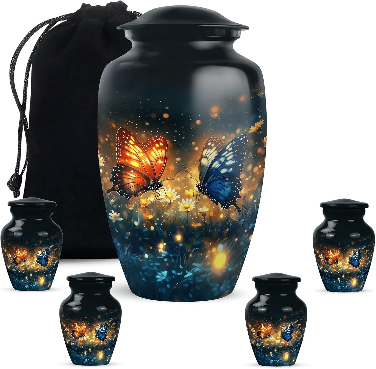 This butterfly cremation urn is a beautiful and meaningful tribute to a cherished soul. handcrafted with care, this full-size urn stands 10 inches tall and holds up to 200 cubic inches of ashes, making it ideal for honoring an adult with dignity and elegance. Designed for those seeking an urn for ashes adult male or an urn for ashes for women, this piece combines delicate beauty with durable function. The butterfly design reflects the journey of life, love, and spiritual rebirth, making it a powerful symbol for remembrance. Whether you are searching for funeral urns to display at a memorial, cremation urns for burial, or a decorative urn that brings comfort to the home, this adult urn offers timeless appeal. The threaded lid ensures secure closure, preserving ashes safely while providing peace. This cremation urn serves as a heartfelt option for families in need of an urn for ashes, a burial urn for ashes, or a centerpiece for memorial décor. It fits gracefully into any setting, from home altars to cemetery niches. Whether you are looking for urns for ashes for mom, urns for human ashes adult female, or an ash holder for a beloved husband, wife, or parent, this design speaks to the soul. Perfect as a cremation urn for adults, it resonates with those who appreciate symbols of hope and serenity. This butterfly-themed urn is an ideal choice for individuals looking for ash urns, cremation urns for human ashes, or urns for ashes that capture both beauty and meaning. It’s suitable for use as a decorative urn, a burial urn, or a keepsake in remembrance ceremonies. Families in search of funeral urns for ashes adult will find comfort in its artistic details, while those needing urns for adults will appreciate its size and craftsmanship. Whether you're commemorating a mother, father, brother, or close friend, this urn for ashes honors their memory with love and grace. Designed for both men and women, this butterfly cremation urn helps transform grief into a lasting tribute.