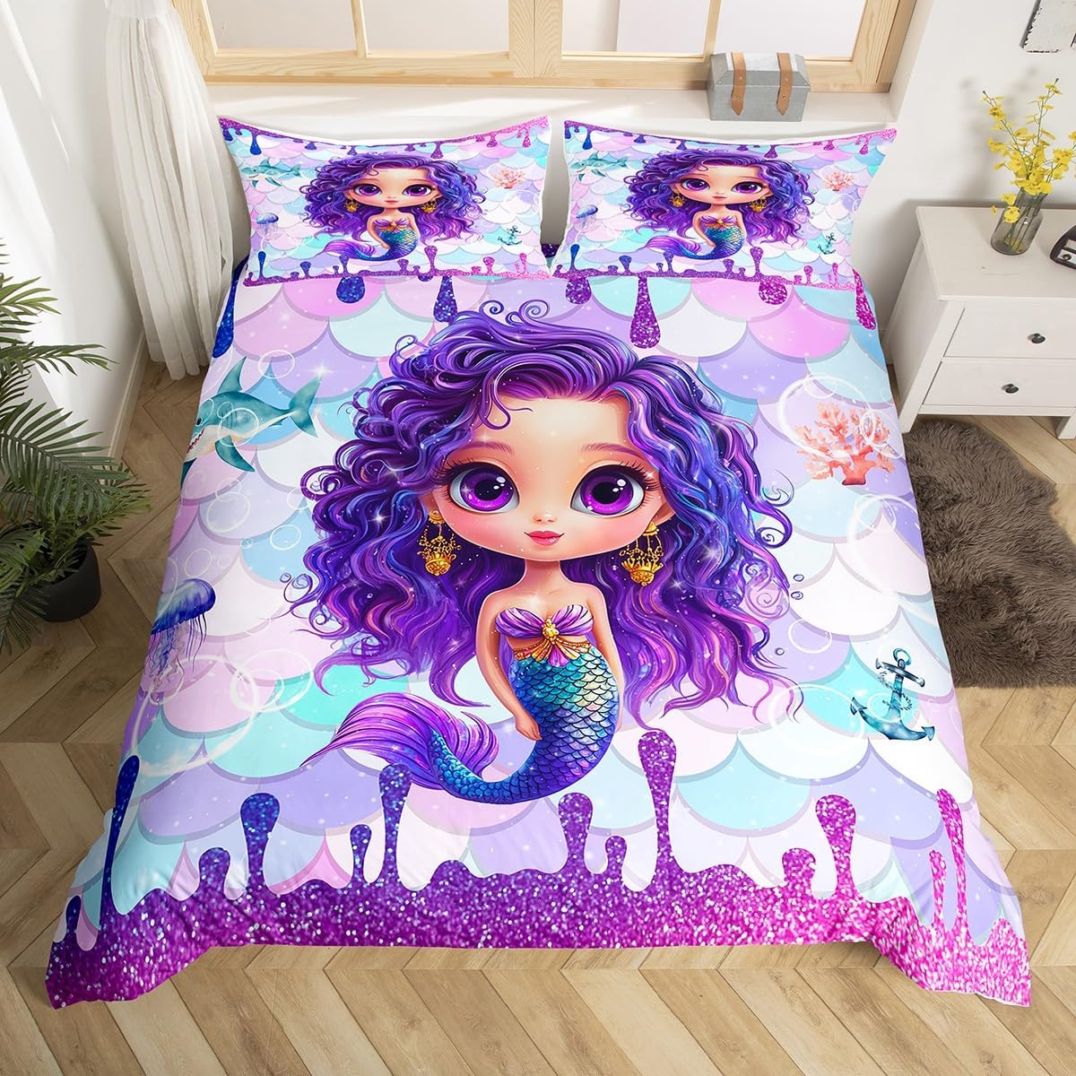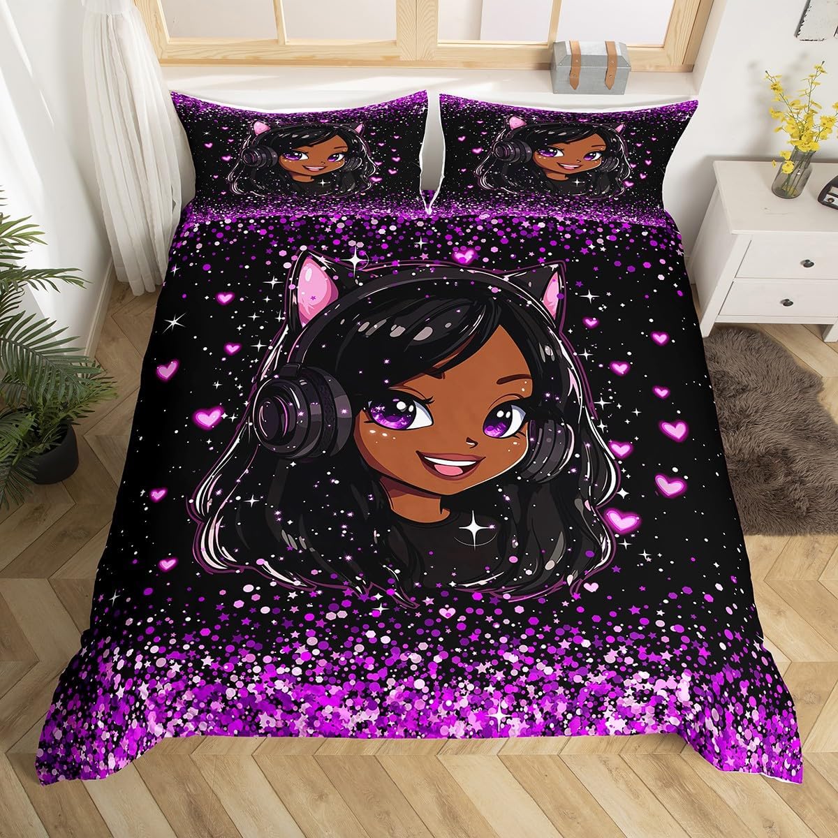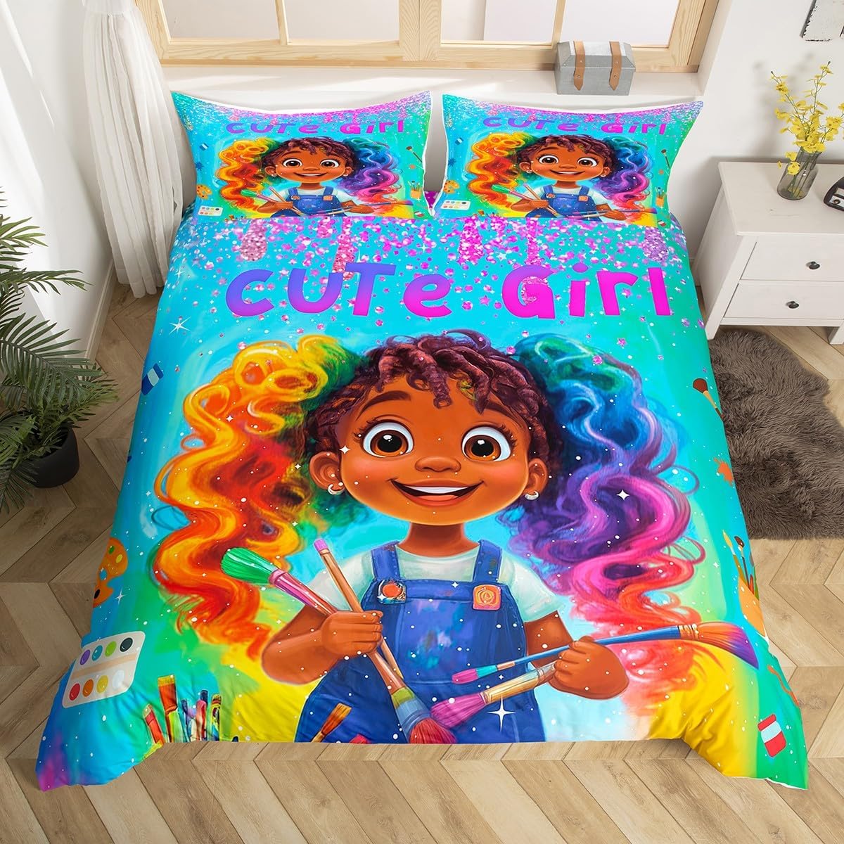 Package Include: Duvet Cover, Pillowcase; High Quality Duvet Cover Set Pattern Bedding Set, simply decorating your rooms any time you want, bringing you fresh feel for year round use. Polyester: Made from polyester microfiber, the sheet set offers strength, natural resistance to shrinking and a noticeably soft hand feel. Size Information: Toddler size 2pcs: 1 x Duvet Cover 42" x 58", 1 x pillowcase 20" x 30".Without Comforter. Twin size 2pcs: 1 x Duvet Cover 68" x 90", 1 x pillowcase 20" x 30".Without Comforter. Full size 3pcs: 1 x Duvet Cover 80" x 90", 2 x pillowcase 20" x 30".Without Comforter. Queen size 3pcs: 1 x Duvet Cover 90" x 90",2 x pillowcase 20" x 30".Without Comforter. King size 3pcs: 1 x Duvet Cover 104" x 90", 2 x pillowcase 20" x 36".Without Comforter. Personalize your bedroom: Beautiful design and colorful print, makes your bedroom unique and brings you a wonderful dream. Washing instructions: Machine wash separately in cold water,hang dry, do not bleach. Occasion: The cute soft duvet cover bedding sets designed for Children ,Adult, Men, Women, Teens. This duvet cover set is also suitable for full seasons, Spring, Summer, Autumn and Winter.