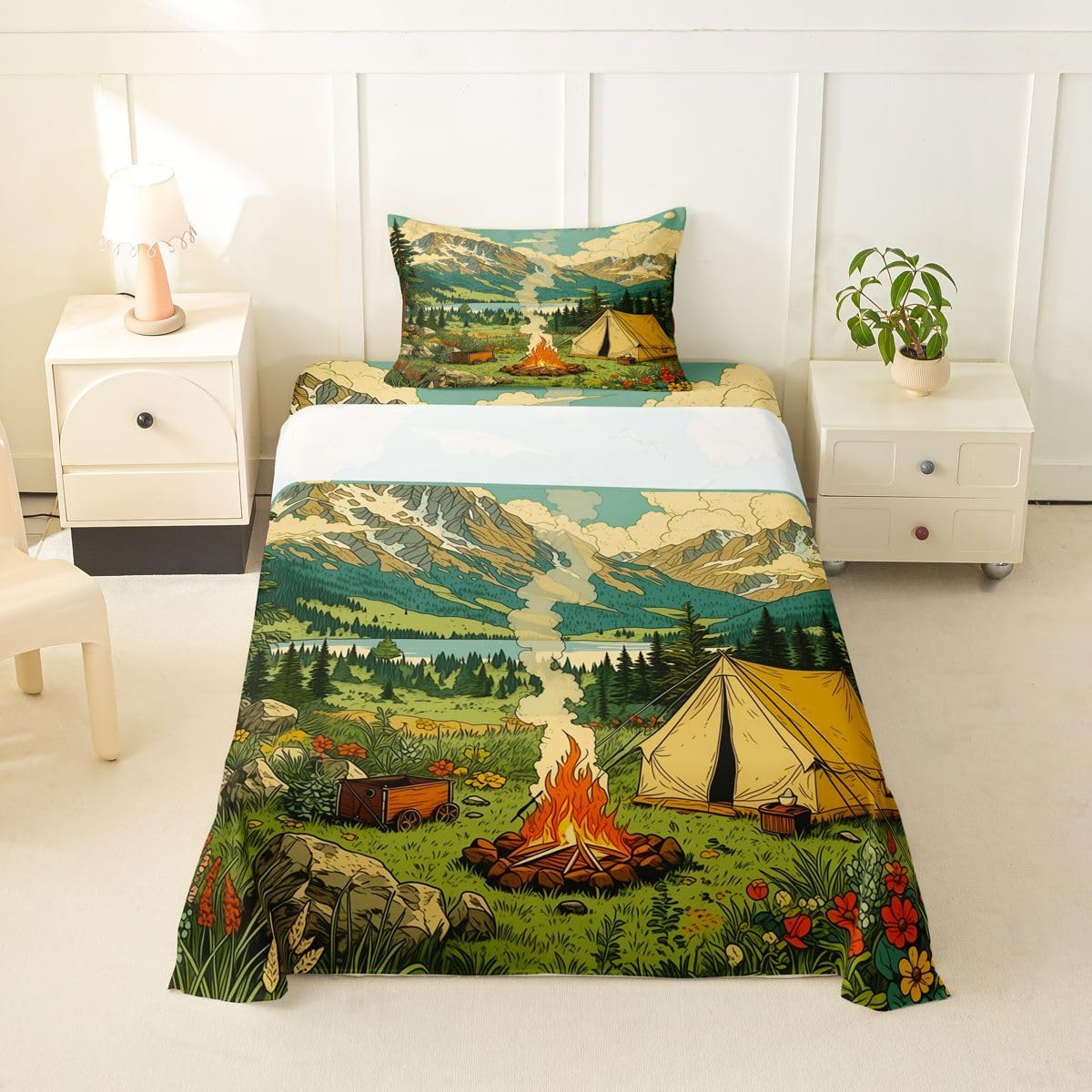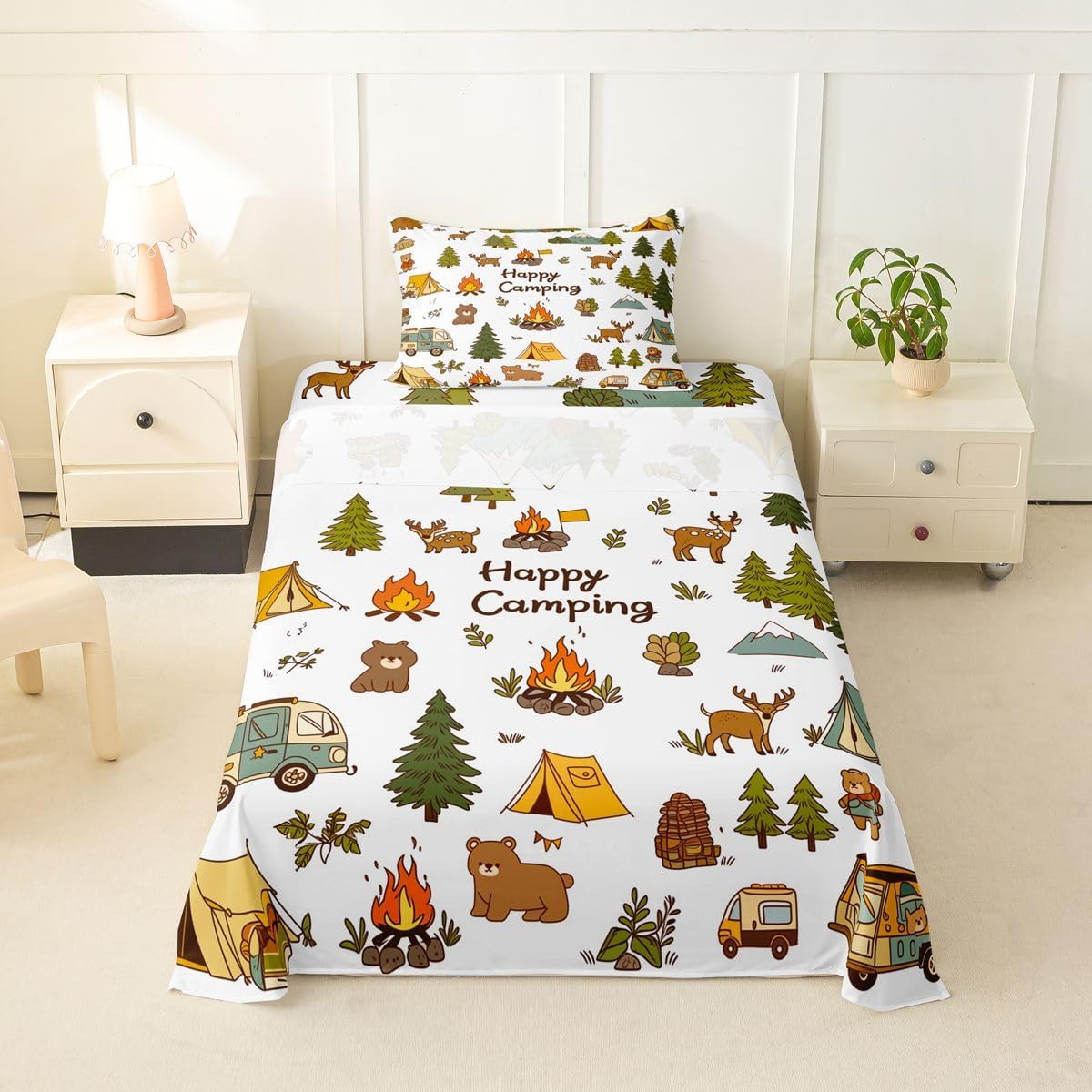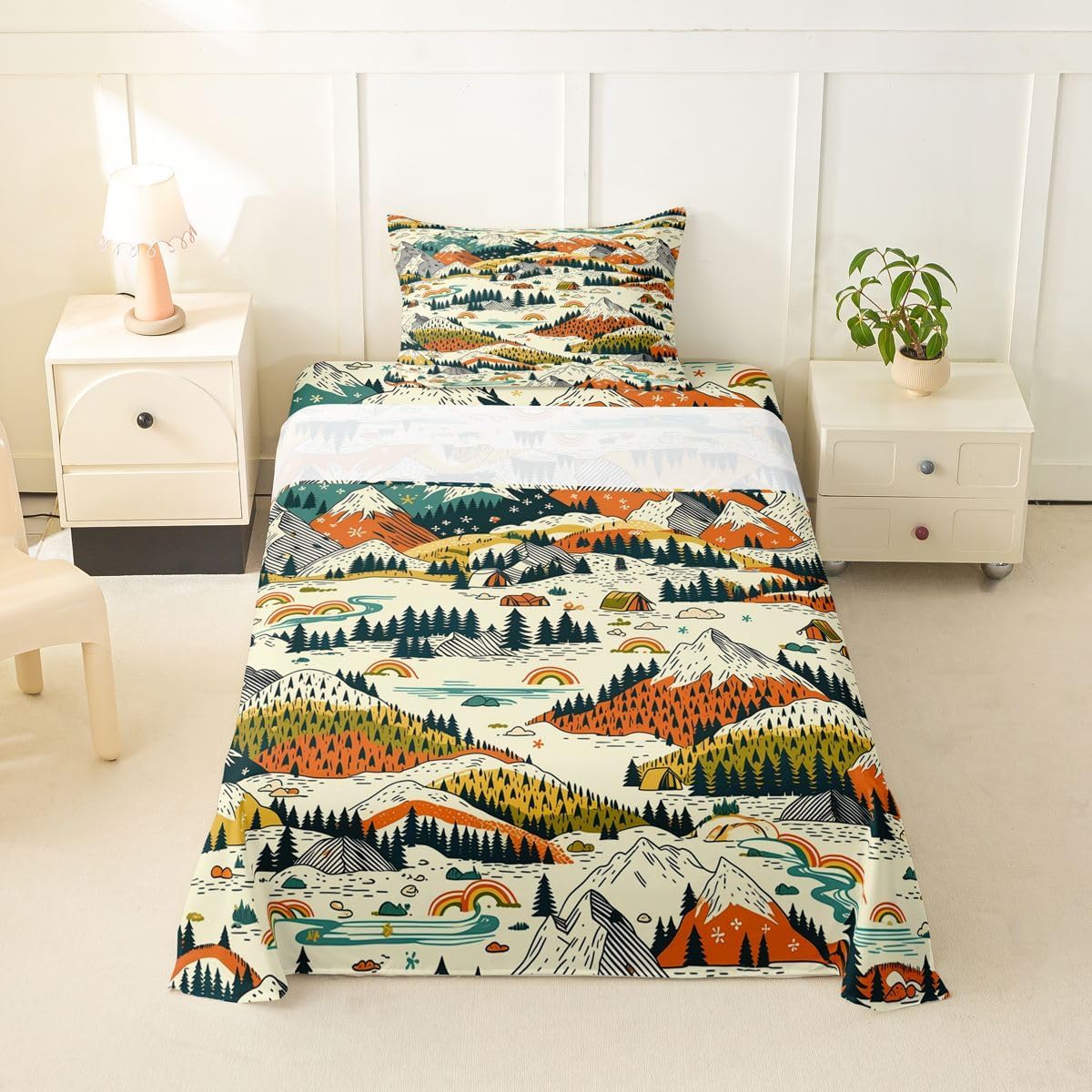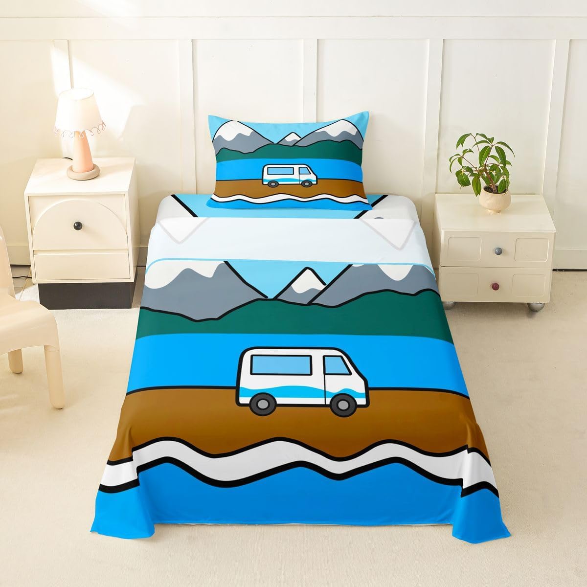Our bed sheet is made of polyester fabric, lightweight and soft; stylish design is very suitable as room decoration for boys and girls; keep warm in winter and cool in summer; create a comfortable sleeping environment to make you fall asleep all night Range of size 1 twin fitted sheet 39 inch x 75 inch x 16 inch and 1 twin flat sheet 66 inch x 96 inch and 1 standard pillowcase 20 inch x 30 inch 1 full fitted sheet 54 inch x 75 inch x 16 inch and 1 full flat sheet 81 inch x 96 inch and 2 standard pillowcase 20 inch x 30 inch 1 queen fitted sheet 60 inch x 80 inch x 16 inch and 1 queen flat sheet 90 inch x 102 inch and 2 standard pillowcase 20 inch x 30 inch 1 king fitted sheet 78 inch x 80 inch x 16 inch and 1 king flat sheet 90 inch x 106 inch and 2 standard pillowcase 20 inch x 36 inch