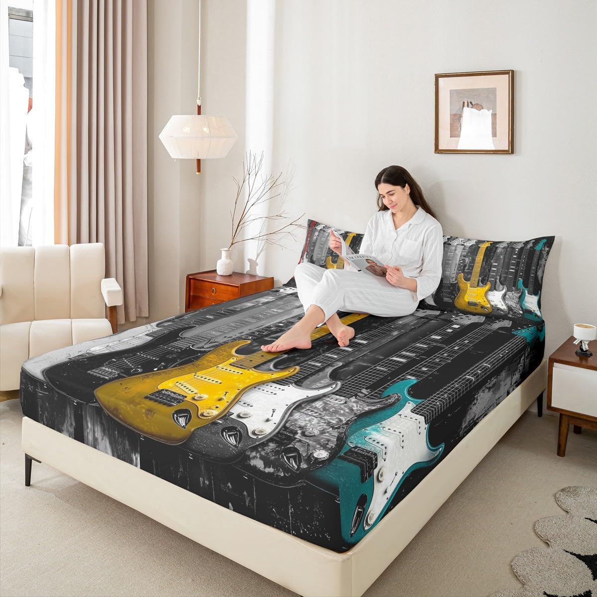Package Include:fitted sheet,Pillowcase.No flat sheet or top sheet. Fitted sheet set pattern bedding set, simply decorating your rooms any time you want, bringing you fresh feel for year round use. Made from polyester,the sheet set offers long lasting strength,anatural resistance to shrinking and a noticeably soft hand feel. Size Information: Twin size : 1 Fitted Sheet 39"W x 75"L x 16"H ,99 x 190 x 41cm , 1 pillowcase 20" x 30", 51x75cm . Full size : 1 Fitted Sheet 54"W x 75"L x 16"H ,137 x 191x 41cm ,2 pillowcases 20" x 30", 51 x 75cm . Queen size : 1 Fitted Sheet 60"W x 80"L x 16"H ,152 x 203x 41cm ,2 pillowcases 20" x 30", 51 x 75cm . Personalize your bedroom: Beautiful design and colorful print, makes your bedroom unique and brings you a wonderful dream. Washing instructions: Machine wash separately in cold water,hang dry, do not bleach. Occasion: The soft Fitted Sheet bedding sets designed for Children ,Adult, Men, Women, Teens. This Fitted Sheet set is also suitable for full seasons, Spring, Summer, Autumn and Winter.