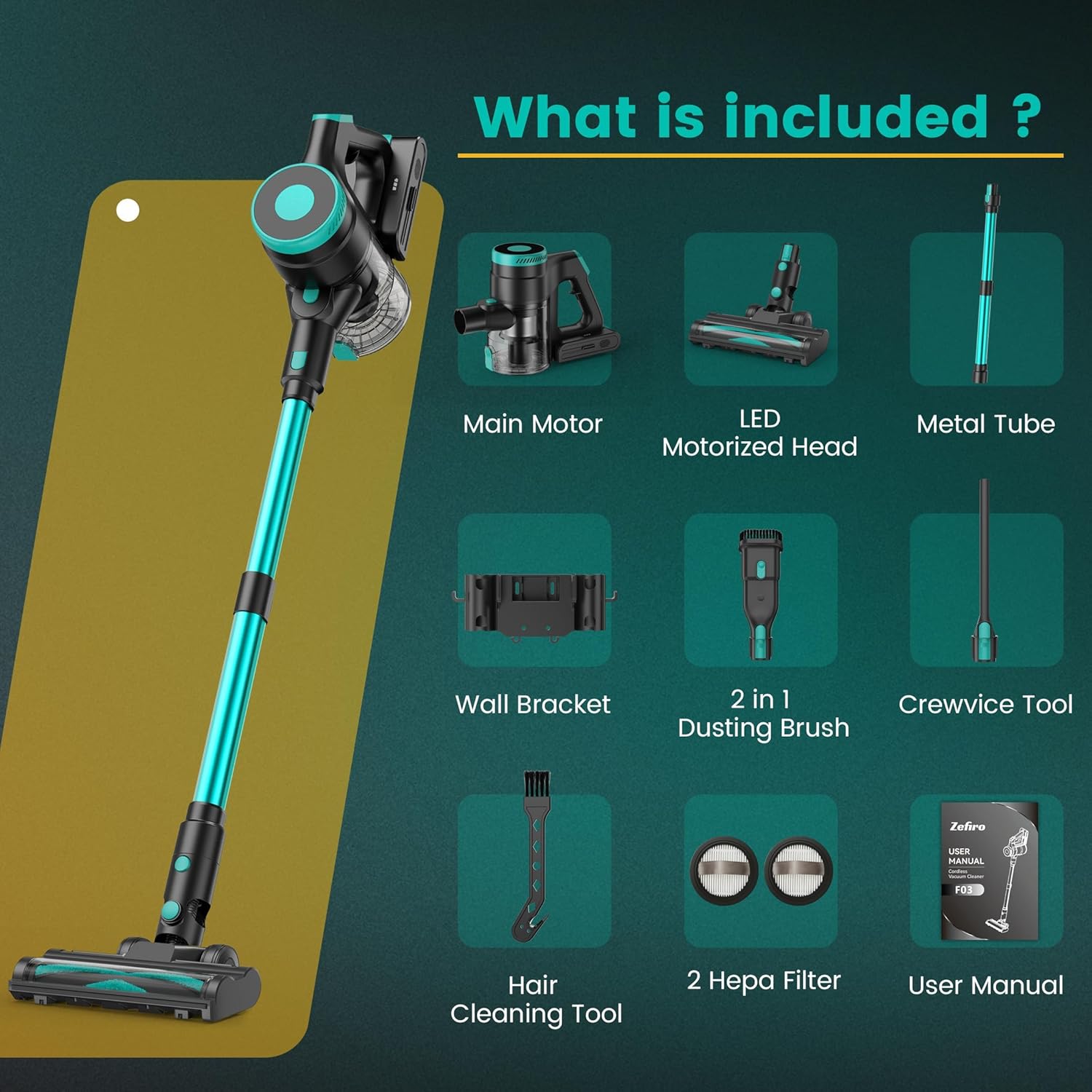 | Included Components | ➤Handheld Mode, ➤2-In-1 Combination Brush for Sofa/Car, ➤Extendable Conduct Rod for High Places Like Ceilings, ➤Brushroll for Barefloor / Carpets, ➤Crevice Nozzle for Narrow Space |