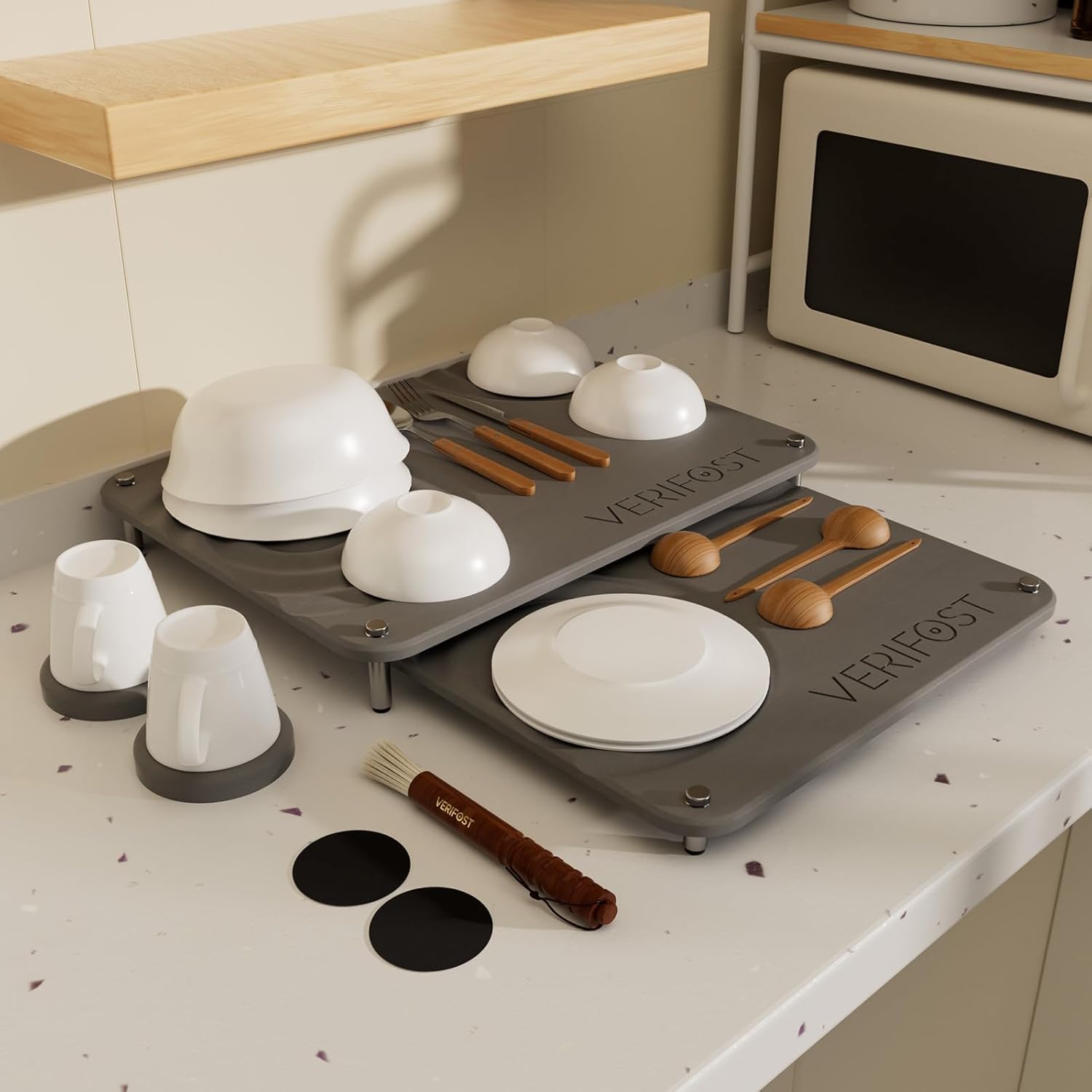 | Included Components | 1 x Acacia Wood Holder Stand, 1 x Diatomaceous Earth Mat-Large, 1 x Diatomaceous Earth Mat-Midium, 8 x Anti-slip Feet, Sand Paper & Stain Brush |