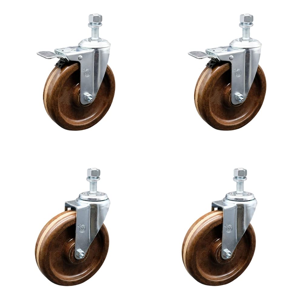 High Temperature Phenolic Swivel Threaded Stem Caster - 4" x 1.25" Brown Wheel and 1/2" Stem - 300 lbs Capacity/Caster - Service Caster Brand