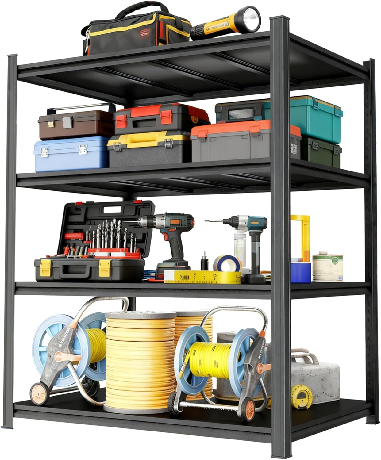 Thickened steel structure Multi-functional storage shelves Load capacity 500 lbs per shelf Free adjustable height Suitable for garage, basement, warehouse storage, black (63“H*45.3 ”W*19.7 "D)