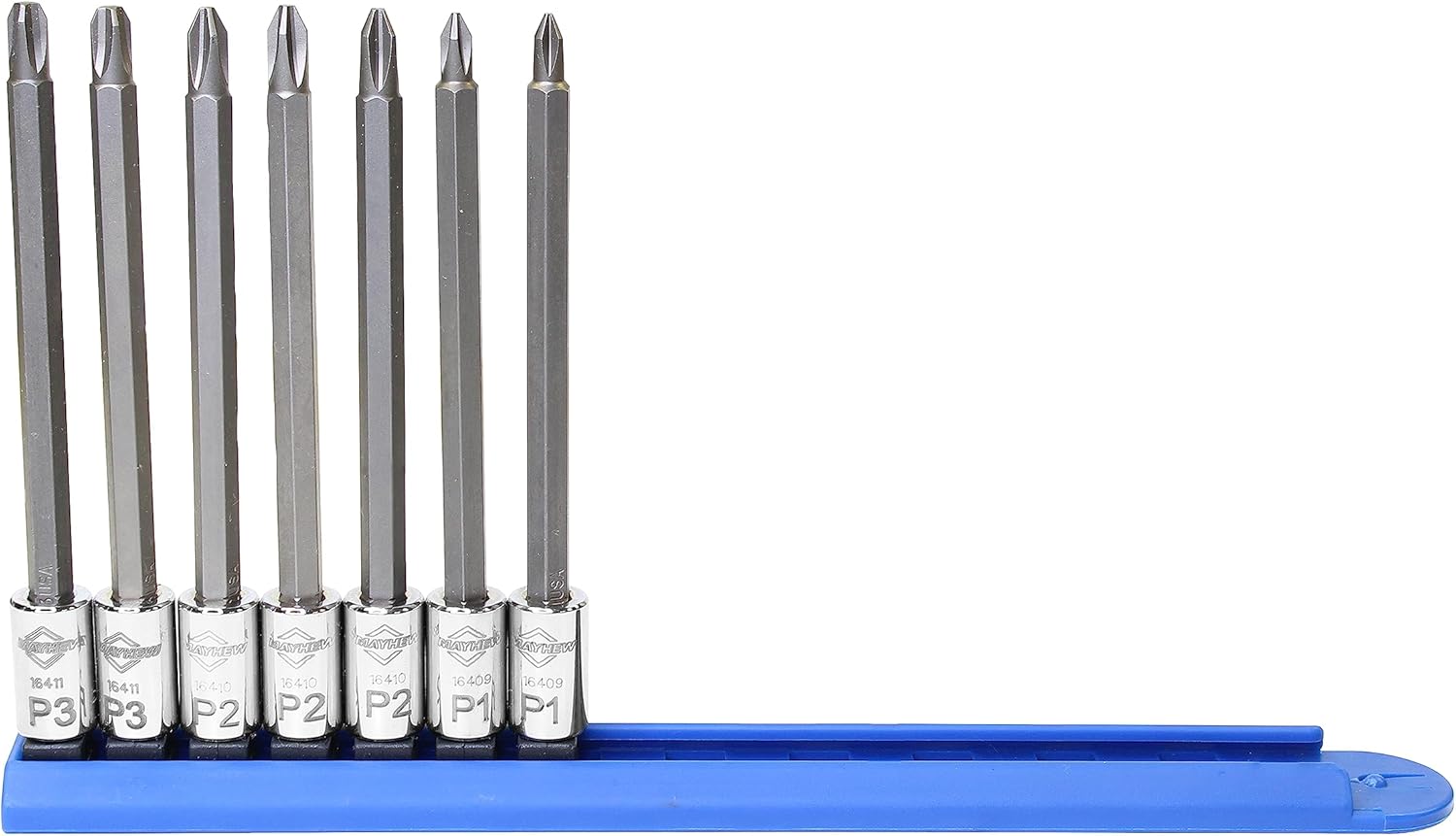Made from S2 Tool Steel with proprietary heat treat for superior strength and durability, Mayhew's socket bits have a precision tip profile for positive and precise fastener engagement. Sockets feature a chrome plating for added strength and wear resistance. All bit sets feature a convenient color coded storage rail that keeps them organized, easily identified, and ready for use. Available in a range of sizes and styles.