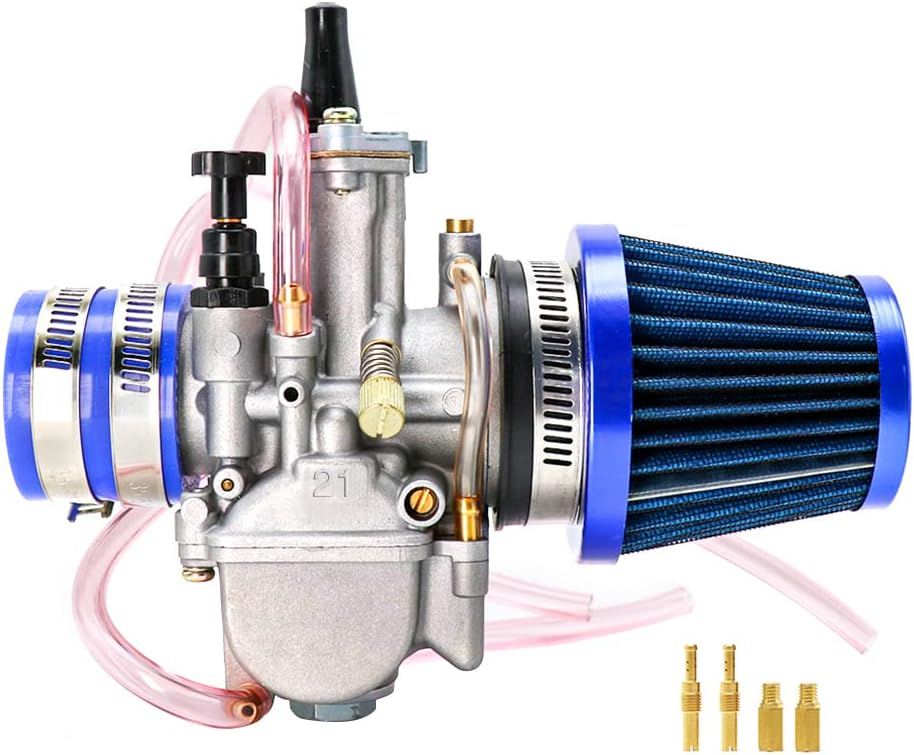 ♣♣The Carburetor PW-K is a high-quality and reliable automotive carburetor designed to optimize the fuel-air mixture in your vehicle's engine for efficient combustion. This product is compatible with a wide range of vehicles, For example: YZ80 YZ85 DT100 RM80 85 CR80 CR85R GY6 KX85 KX100 KLX140 Cr85r ssr125 GX240 GY6 Predator212.Making it suitable for various applications.♣♣Featuring a durable construction, the Carburetor PW-K ensures long-lasting performance and protection against wear and tear. It comes equipped with a visible float bowl that allows you to easily monitor the fuel level, ensuring proper functioning and preventing any potential issues. Additionally, the 90° guide elbow tube facilitates easy installation and enhances the overall performance of the carburetor.♣♣The Carburetor PW-K includes an air filter and multiple intake pipe manifold, which effectively filters out debris and contaminants from entering the engine, resulting in cleaner combustion and improved engine life. The inclusion of this essential component ensures that your vehicle performs optimally by maintaining the correct balance of fuel and air during operation.♣♣Whether you are a professional mechanic or a DIY enthusiast, the Carburetor PW-K is a user-friendly product. Its easy-to-use design allows for convenient installation and hassle-free maintenance. With its precise engineering and precise calibration, this carburetor offers superior performance and fuel efficiency, enhancing your vehicle's overall power and smoothness of operation.♣♣Upgrade your vehicle's carburetor with the Carburetor PW-K and experience improved engine performance, enhanced fuel economy, and smoother acceleration. It provides exceptional value for money and delivers reliable results, making it an excellent choice for individuals seeking a high-performance carburetor solution.