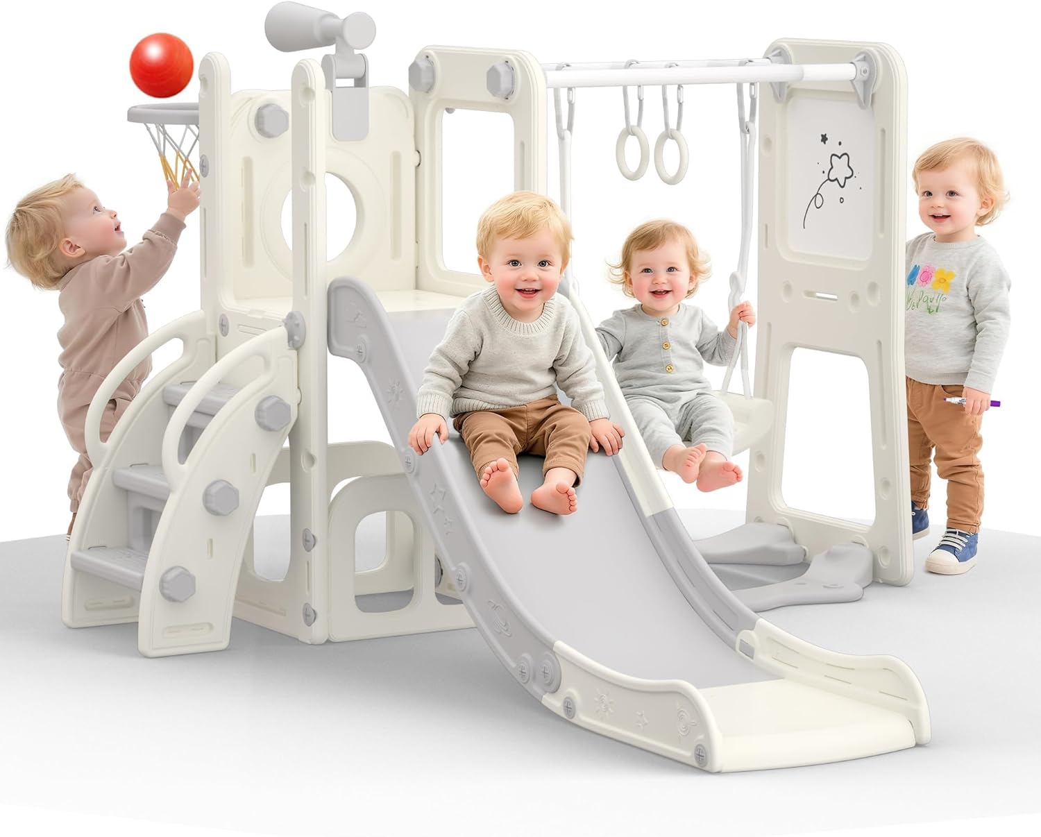 • Encourage Growth & Development: This toddler slide set helps toddlers improve balance, coordination, and gross motor skills while climbing, sliding, and shooting hoops. Supporting active growth through joyful play.
