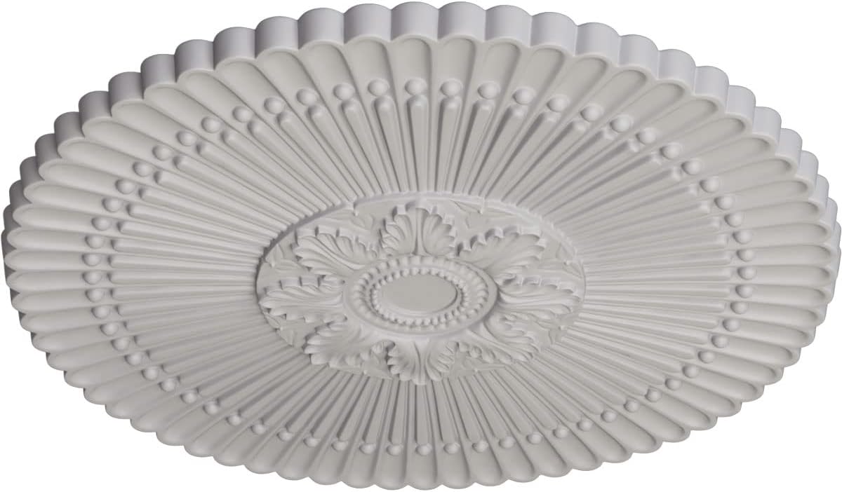 Our ceiling medallion collections are modeled after original historical patterns and designs. Our artisans then hand carve an original piece. Being hand carved each piece is richly detailed with deep relief, sharp lines, and a truly unique touch. That master piece is then used to create a mold master. Once the mold master is created we use our high density urethane foam to form each medallion. The finished look is a beautifully detailed, light weight, solid construction, focal piece. The resemblance to original plaster medallions is achieved only by using our high density urethane and not vacuum formed, "plastic" type medallions. Medallions can be cut using standard woodworking tools to add a hole for electrical or a ceiling fan canopy. Medallions are light weight for easy installation. They are fully primed and ready for your paint.