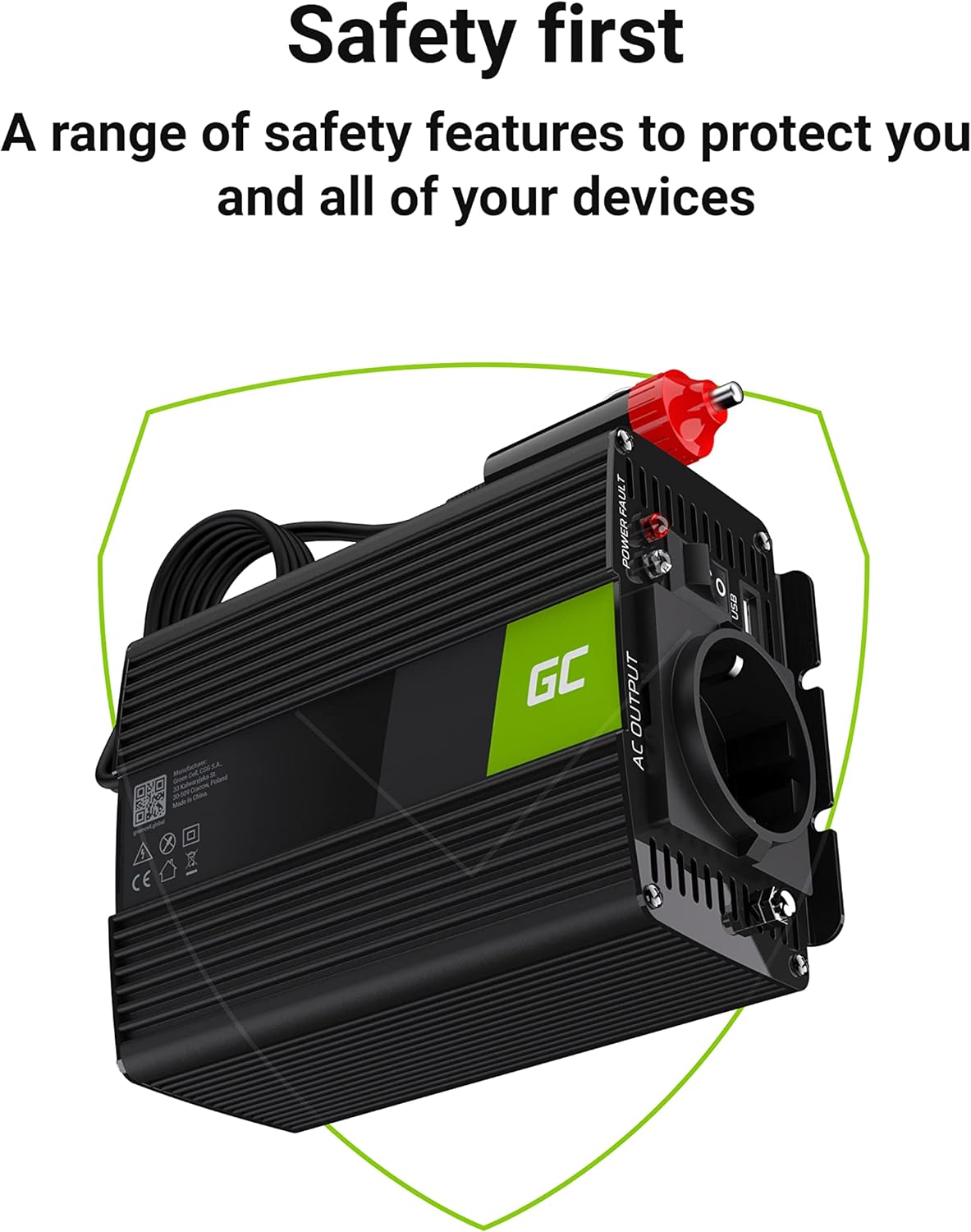 Green Cell 150W/300W 12V to 230V Sine Wave Volt Car Voltage Converter Inverter Power Solar Inverter DC AC Converter Current Converter Caravan Car Modified Sine Wave Cigarette Lighter Socket