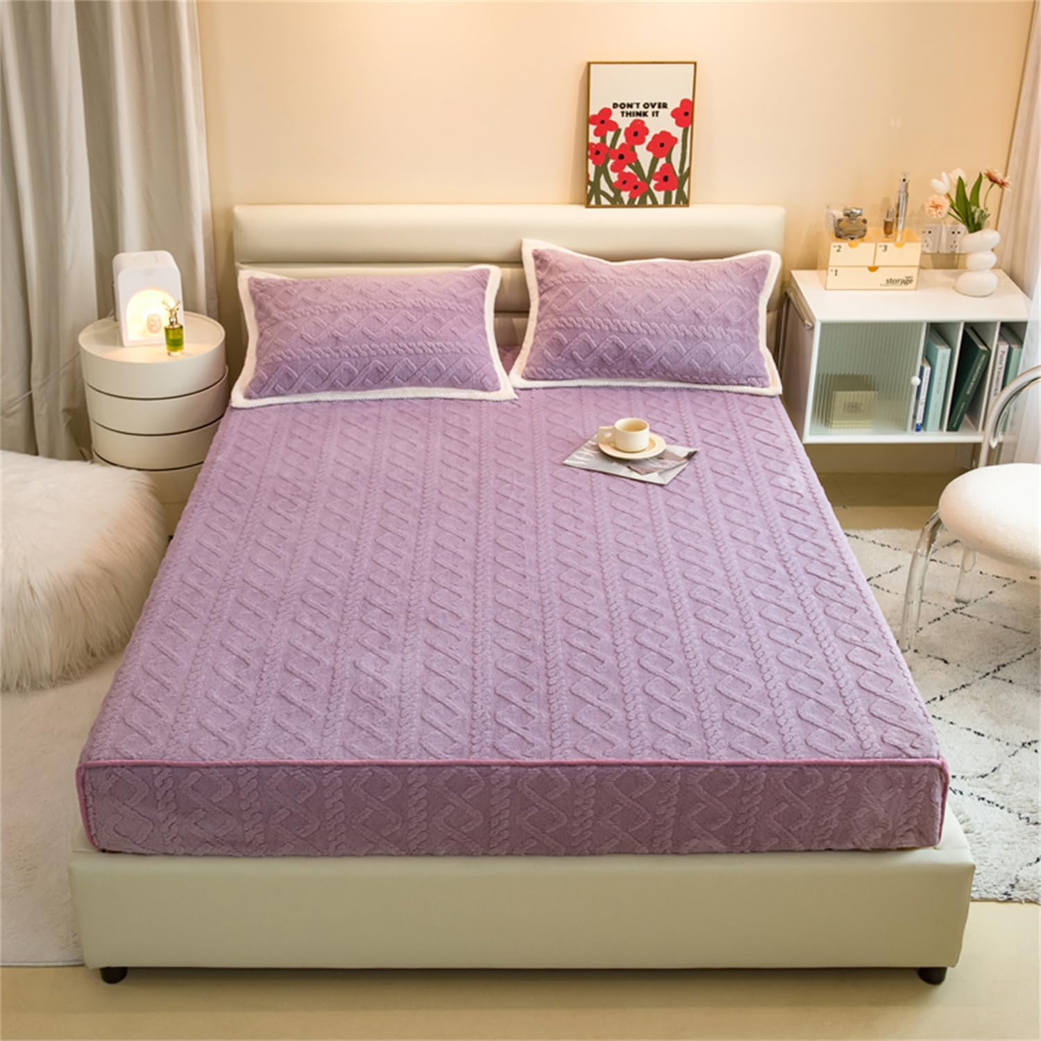 Velvet Bed Sheet Fuzzy Warm Bedspread with 11'' Deep Pocket Premium Quality Fabric 100% flannel, qualified fabric and good workmanship, people who are on this mattress topper feel very comfy and breathable, providing comfy and cozy sleeping experience for you and your family. Even for people with hot body. Fitted Sheet Style The fabric with 4-way flexibility tech stretches over the mattress and stays in place securely all night, no more slipping off, moving or wrinkling, fits tightly and prevent scratching from your pets like dog or cat, also kids friendly. The 360° fabric pocket sides can be easily stretched to fit mattresses up to 11" thick. This mattress cover will hold tight on all mattress types, whether it's a regular mattress, a waterbed, or memory foam. It will never slide no matter how you twist and turn in your bed. Machine Washable: Machine washable under gentle cycle and make it fluffy again dried under the sunshine. Size: Twin: 1 x Fitted Sheet 35"x78" (90x200cm) + 1 x Pillowcase 20"x30" Twin XL: 1 x Fitted Sheet 47"x78" (120x200cm) + 1 x Pillowcase 20"x30" Full: 1 x Fitted Sheet 59"x78" (150x200cm) + 2 x Pillowcase 20"x30" Queen: 1 x Fitted Sheet 70"x78" (180x200cm) + 2 x Pillowcase 20"x30" King: 1 x Fitted Sheet 78"x86" (200x220cm) + 2 x Pillowcase 20"x30" Package includes: 1PCS x Flannel Velvet Bed Sheet 1/2PCS x Pillowcase Notes: 1.Due to manual measurement, there is a certain error in the product size. 2.Due to lighting effects and shooting angles, there may be chromatic aberration in the product, please understand.