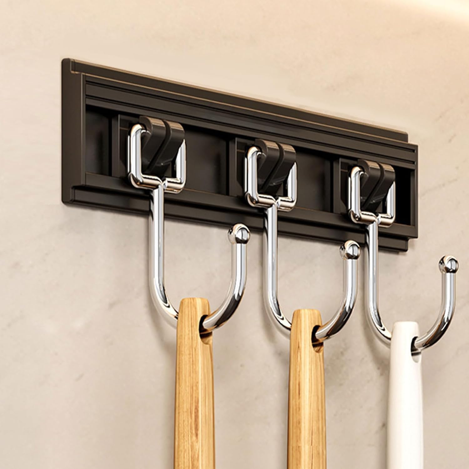 1/ With this kitchen wall rod, you can easily find your kitchen utensils within reach and hang everything where you can see them, allowing you to cook like a professional home chef in your gourmet kitchen.2/The kitchen organizer tools are easy to apply and will not damage your wall, no nails or drilling required, very easy to remove without damaging the surface.Name: Hanging Utensil RackMaterial: Carbon steel, Stainless steelColor: BlackThe package includes:Kitchen storage hooks x1 (glue not included)