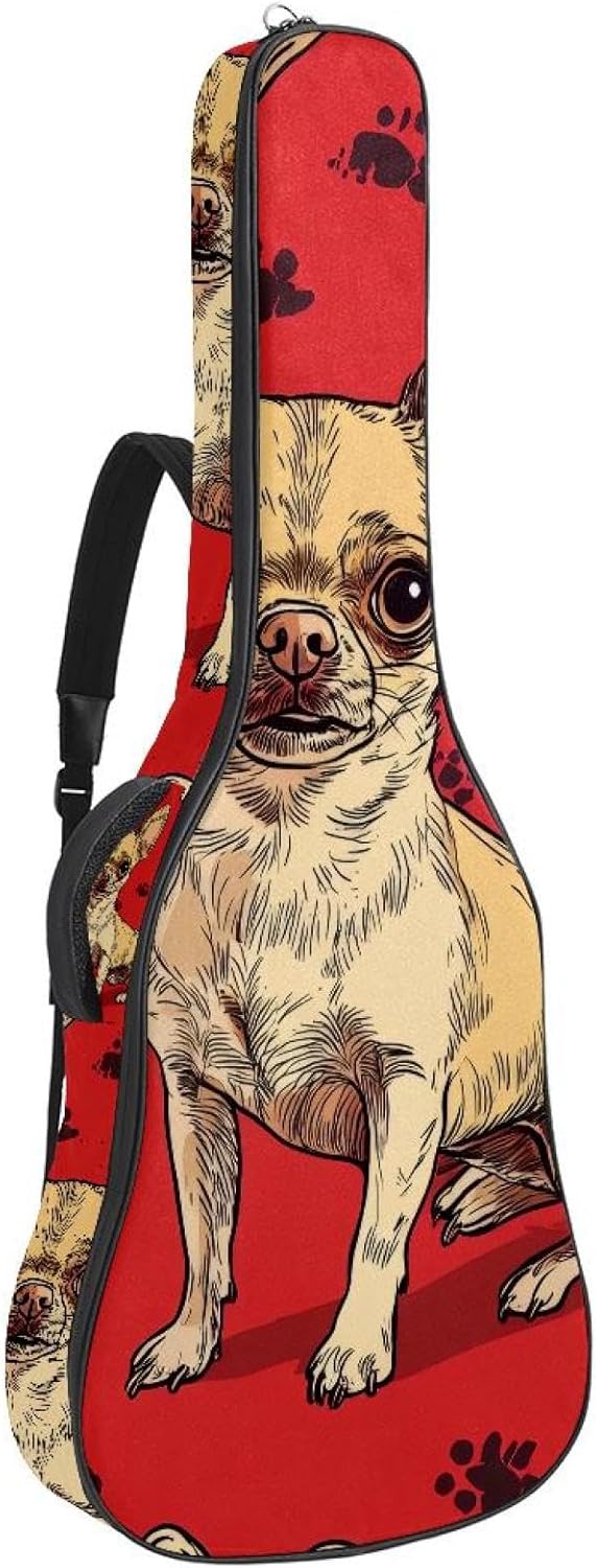 Give your valuable guitar the premium protection it deserves. Our Cute Printed Guitar Gig Bag is engineered for the modern musician who demands both security and convenience. Whether you're heading to a gig, a practice session, or on a short trip, this bag ensures your instrument arrives in perfect condition, ready to play.Constructed from durable, waterproof Oxford cloth, this bag stands up to the elements and the test of time. The interior is a sanctuary for your guitar, featuring ultra-thick padded sidewalls and a soft, anti-scratch lining that cradles your instrument, preventing scratches and damage. The heavy-duty rubber base acts as a shield against everyday bumps and allows for stable placement on any surface.Organization is effortless with multiple dedicated compartments. Two main storage pockets keep all your essential accessories—like a foldable music stand, tuner, picks, cables, and extra strings—neatly sorted and easily accessible. Never fumble for your tablet or sheet music again; the specially designed back pocket keeps them safe and separate.For a perfect, secure fit, the adjustable neck support and internal Velcro strap ensure your guitar does not shift around inside the bag, providing peace of mind with every carry.Care Instructions: To preserve the quality and appearance of your gig bag, please do not machine wash. Simply wipe clean with a damp cloth to remove any dirt or stains.