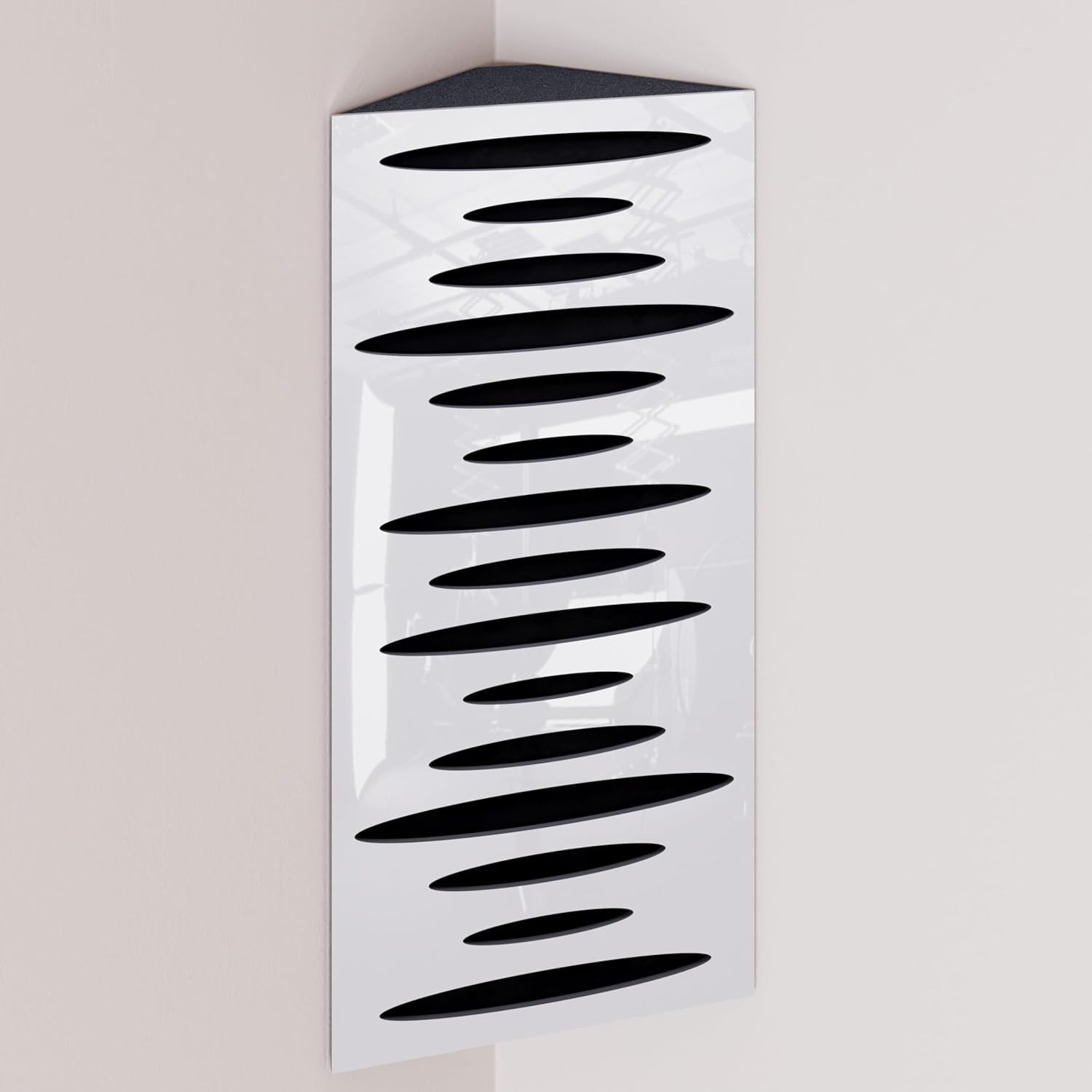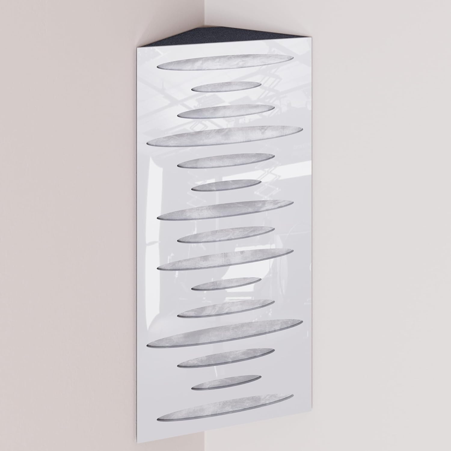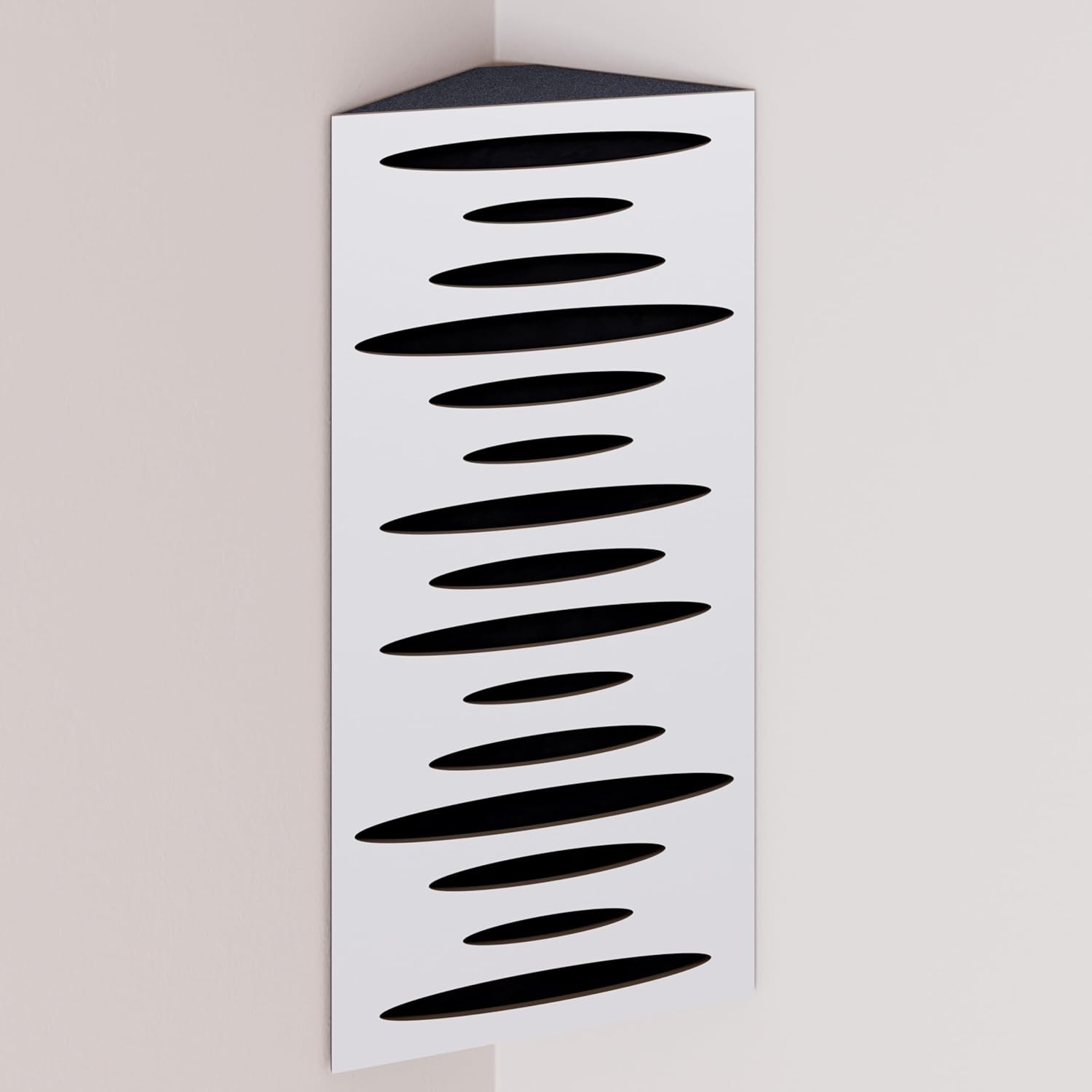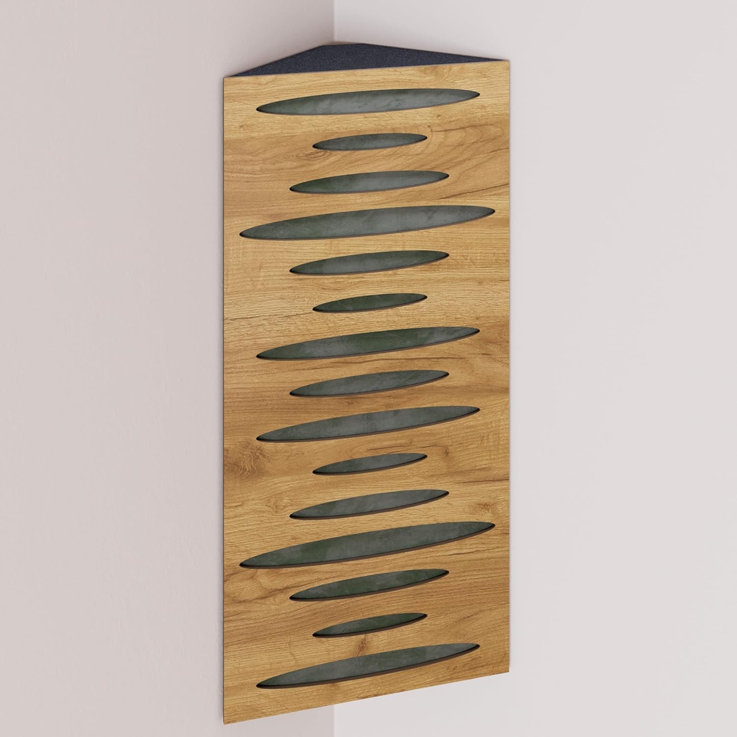 Narrow corner bass traps are decorated with velvet fabric, ideally placed in the corners of a room to mitigate low frequency problems and minimise echo. The trapezoidal shape ensures a snug fit in the corner, smoothly aligning it with the walls.The HDF front plate has a series of diffusion grooves that fulfil two functions: providing high frequency absorption to control corner reflections without attenuating sound, while simultaneously acting as a midrange diffuser.These bass traps excel in virtually any room where low frequency reverberations and standing waves are present. In addition to improving modal reverberation, the angular bass trap smooths the frequency response by reducing peaks and enhancing lows while correcting any frequency dips.PRODUCT DETAILS:Design: Engineered for Sound Absorption and DiffusionAbsorption Frequency: Low and Mid FrequenciesMaterial: Laminated HDF and Acoustic Foam covered with Velvet FabricHDF Color: Available in 10 color variantsFabric Color: Available in 11 color variantsEffective Scattering Range: 63Hz to 2000HzOverall Noise Reduction Coefficient (NRC): 0.41Dimensions: 500x235mm / 19.7x9.25 inchesThickness: 105mm / 4 inchesBoxes of: 2 units.SUITABLE ENVIRONMENTS: Ideal for Enhancing Acoustic Conditions in Recording Studios, Home Theaters, Music Rooms, Office Spaces, Rehearsal Studios, Auditoriums, Conference Rooms, and more.USAGE: Designed to Absorbs Low, High and Mid Range frequencies, slap echo, and other intrusive noises. Mounted in the corner.MOUNTING OPTIONS:Fixing with double-sided adhesive tape (included) in the vertical plane.