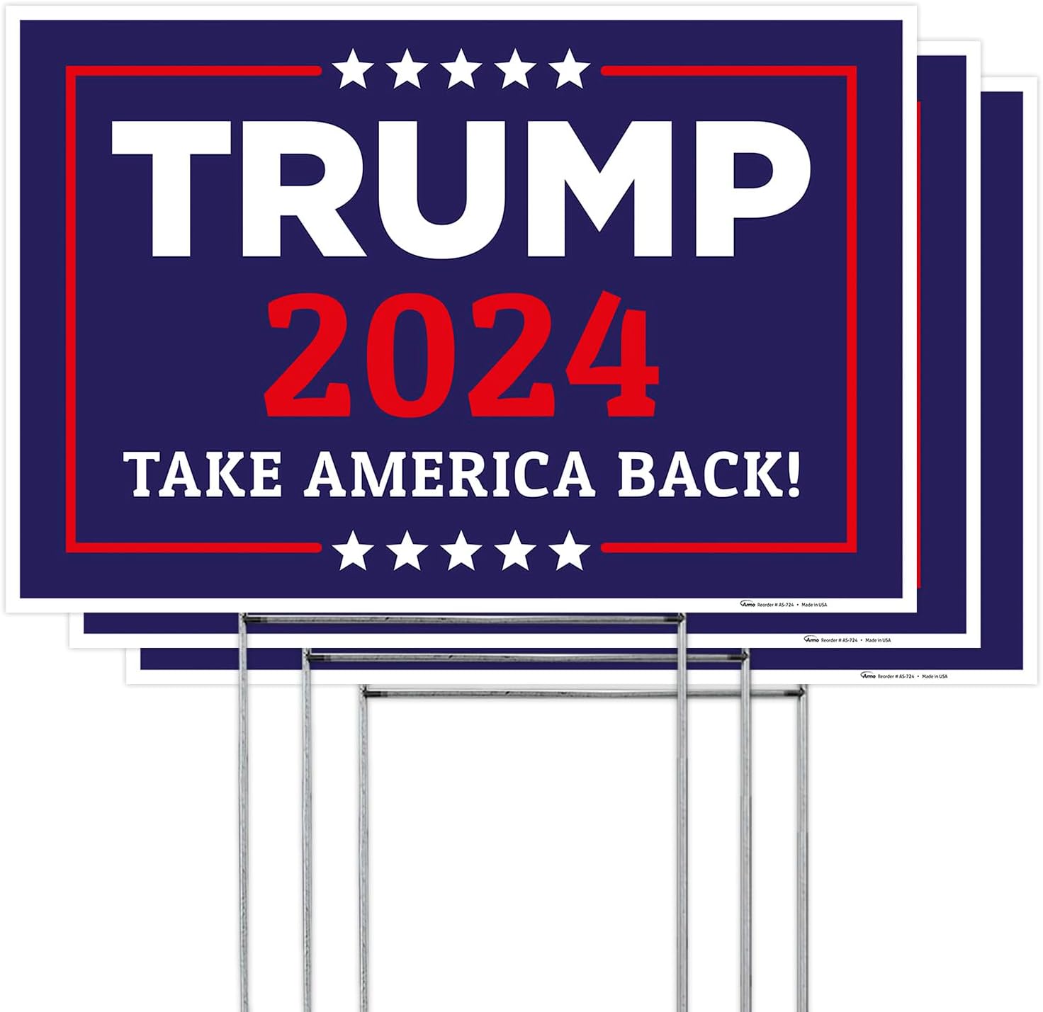Trump Signs For Yard, Trump Pence Keep America Great 2024 Sign, (3 Pack) 18X24 Inches Double Sided With Metal H Stake Waterproof, 2024 Political Campaign Rally Yard Sign, Trump Signs For Yard, By Armo