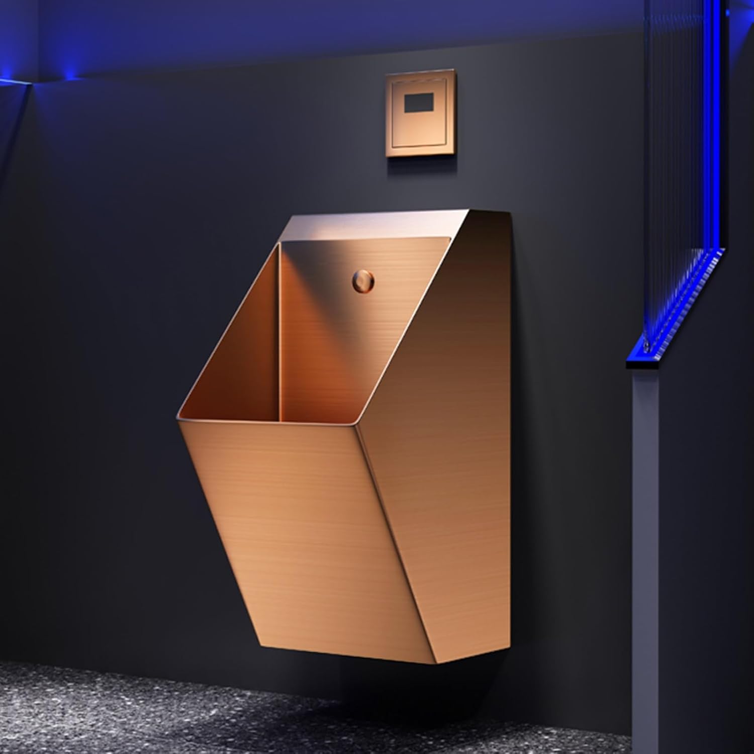 —— Wall-mounted urinal. 304 stainless steel urinal, public toilet urinal with induction drainage, commercial urinal has a simple and luxurious appearance. It is made of 304 stainless steel and multi-layer brushed. It has fast water drainage and strong decontamination, suitable for any decoration style.—— Multiple features:· Durable stainless steel material with high strength and wear resistance and long service life;· The surface of stainless steel is smooth, does not easily absorb dirt, and is easier to clean than ceramic urinals;· Concealed water outlet, full flush, efficient water saving;· Wall-mounted design effectively saves space and is easy to install and use.—— Product specifications:- Name: Urinal/Wall-mounted sensor urinal- Material: 304 stainless steel- Surface technology: Integrated wire drawing- Color: Silver , Black , Gray , Gold , Rose gold , Bronze- Drainage method: Wall drainage- Installation method: wall-mounted- Flushing method: automatic flushing- Size: Please refer to the picture- Applicable places: schools, hospitals, hotels, restaurants, prisons, construction sites, shopping malls, railway stations and other public places- Packing list: sensor + urinal + drain pipe
