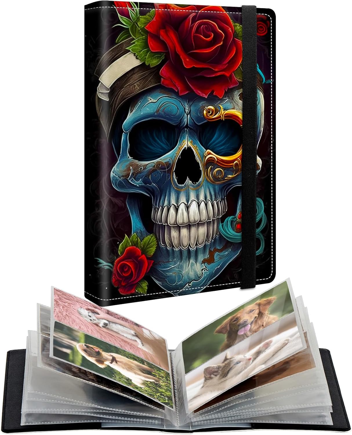 ❤ CGFGHHUY Small Photo Album 4x6 inch Holds 120 Pictures - ensuring your treasured moments are safely stored ❤ Photo Album 4x6 Material ◆ High Quality PU Leather Cover + High Transparent PP material inner Pocket ◇ PU Leather Cover with Unique and cute pattern, high -definition printing, not fading, waterproof, durable, exquisite sewing edge ensure long-lasting quality ◆ PP inner Pocket - 98% high transparency pockets allow easy viewing of every detail of each photo without the need to take them out.ensures your photos stay in pristine condition ❤ Photo Album Size: ➢ Photo Album Size: 6.3x5 inches ➣ Fits 4 x 6 inch size photo, Not suitable for photos of other sizes ❤ 4x6 Photo Album capacity: ➢ Small Photo Album can hold up to 120 4x6-inch photos, perfect for on-the-go use, ➣ Allowing you to share good and cherished memories with your Family and friend ❤ Elastic Band Design ♥ Photo Albums with Elastic Band Closure Let is photo album secure and enclosed,Don't worry in photo falling out ❤ Multifunctional Use ♥ Small Photo Album Suitable for Family photo album,Travel photo album,Wedding photo album,Baby photo album,Anniversary photo album,Keep your cherished memories and photos neatly organized ❤ Perfect Gift ♥ Photo Album Book pictures perfect gift to your family,friend and colleague,perfect for birthday,commemorating weddings, anniversaries, and a host of other special occasions ❤ Photo Albums with Skull Roses Flower Pattern Prints, for More Beautiful and Cute Photo albums, please search -CGFGHHUY Photo Album photo album 4x6-