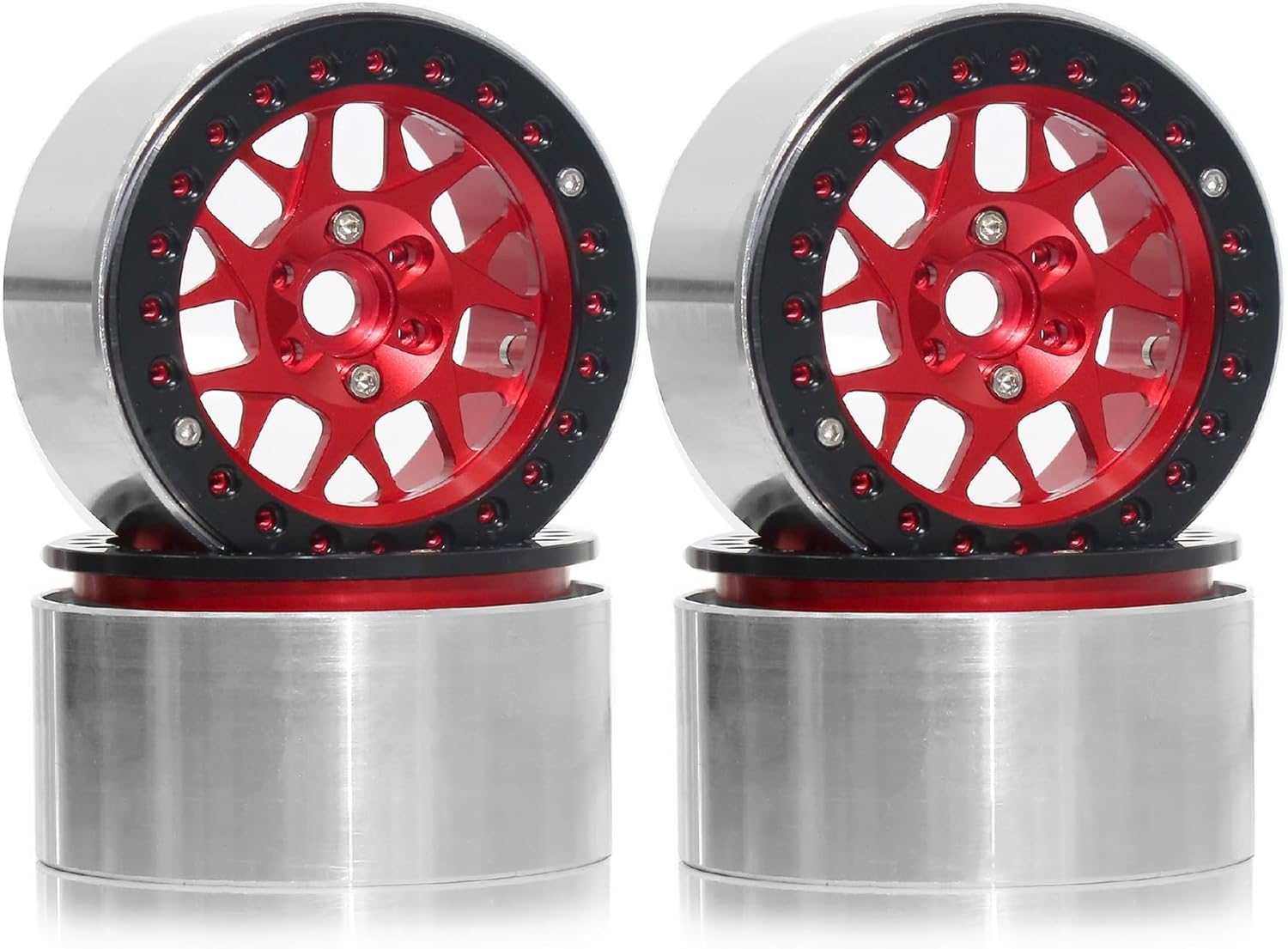 Features: ✔Purchase notes,the color of the item may vary slightly due to photography and your own computer. ✔ This 1.9 rc crawler wheels hubs with 12mm hex be used with most 1:10 RC Crawler Car Axial SCX10 90046 AXI03007 TRX4 Wraith RR10 VS4-10 Redcat Gen8.This rc wheel hub can be used with most 1.9 rc crawler tires and rubber tires mud tyres. ✔1.9 aluminum alloy wheels rims is excellent workmanship and perfect style,easy to install, wonderful replacement for the old or broken one,directly fitment. ✔These 1.9 crawler rims provide ample space for the suspension components, which allowing for better articulation. This feature is crucial for tackling uneven surfaces and obstacles with ease. ✔This 1.9 inch rc wheel rim made of quality cnc aluminum alloy material. The 1/10 aluminum alloy wheel can shock-proof,to offer the best crawler racing experience,and can ensure stable and flexible driving.You do not worry about the rims splited when the rc crawler car runs. ✔The 1.9 mud wheels hubs is unique outer ring design and beadlock design and novel appearance and exquisite workmanship. ✔Size of 1/10 scale rc beadlock wheels,outer diameter: 52 mm (2.05 inch) / width: 29 mm(1.14 inch) / drive hex: 12 mm / (0.47 inch) ✔1/10 rc rock crawler wheels upgrade Parts increases the rc car's overall performance,also gives a great scale looking. Specifications: ✔Material: Alloy Aluminum ✔Quantity: 4pcs / set ✔Weight: 432g / set ✔Diameter: 52mm / 2.05inch ✔Width: 29mm / 1.14in ✔Drive hex: 12mm / 0.47in ✔Color: Red/Titanium/Rainbow color.(Optional) ✔Please check the 1.9 rc tires size info before buying and save you time. Package List: ✔4 * 1.9 rc crawler wheels Note: ✔Use Precautions: we highly recommend using the professional tools to mount it, otherwise,the rc tires adapter will be severely worn! ✔Light shooting and different displays may cause the color of the item in the picture a little different from the real thing.The measurement allowed error is +/- 1-3cm.
