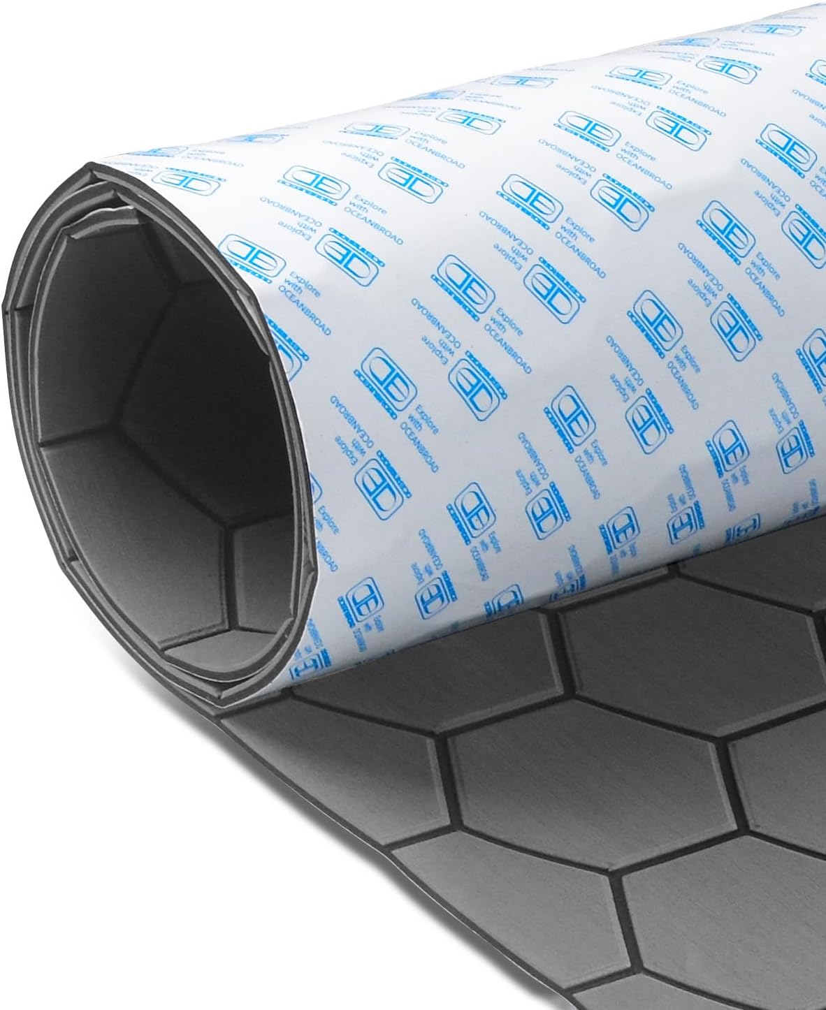 OCEANBROAD CNC Cut Hexagon Boat Flooring 96''x15''/45'' Self-Adhesive EVA Foam Sheet Non-Slip Traction Pad Marine Grip Mat for Boats Surfboard SUP Paddle Board Yacht