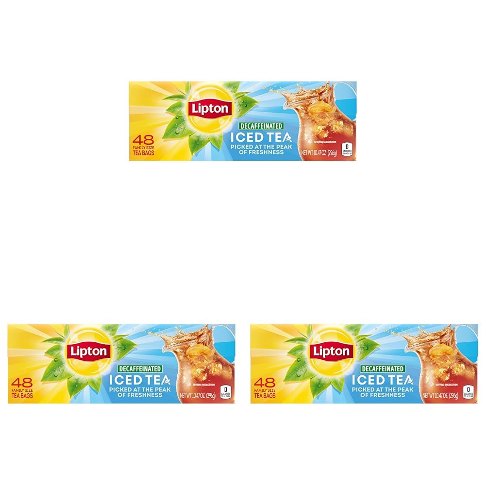 INFUSE YOUR DAY with the smooth, crisp taste of fresh-brewed iced decaffeinated tea with Lipton Decaffeinated Black Iced Tea! Perfect for sharing or enjoying alone, this decaffeinated iced tea is the ideal complement to any meal, any time of day. Crafted with real tea leaves picked at the peak of freshness, each pitcher is full of flavorful goodness without artificial flavors or added sweeteners or colors. Lipton's Decaffeinated Iced Tea is Rainforest Alliance Certified, featuring aromatic and vibrant tea leaves from Malawi. There’s so much to love about America's Favorite Tea! To make a pitcher of decaf iced tea, add two tea bags and 4 cups of boiling water, brew for 3-5 minutes, then fill the rest of the pitcher with ice or cold water.