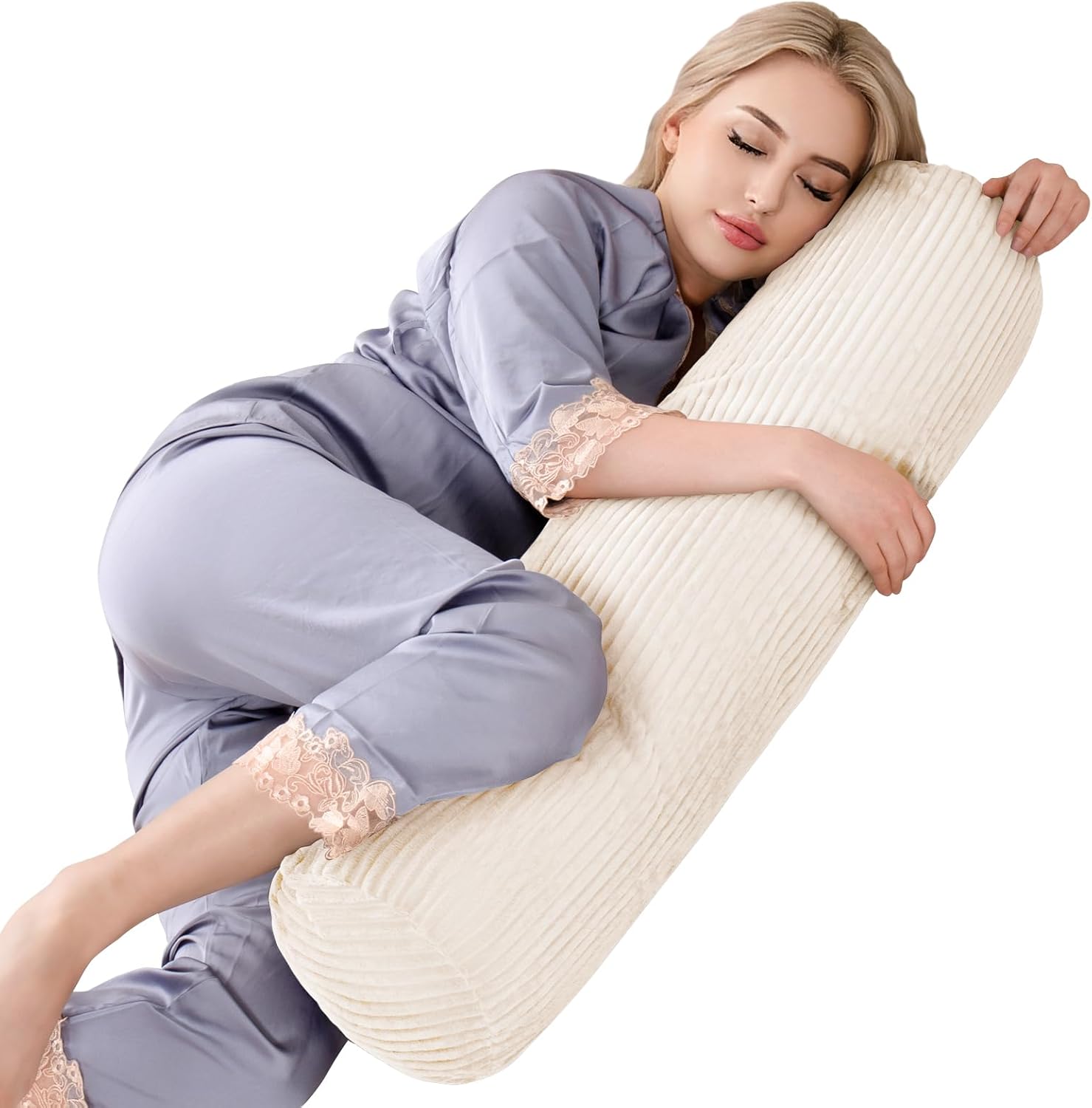 1 MIDDLE ONE cylinder bolster body pillow with velvet cover is designed for side sleepers and also suitable for all kinds of people: pregnant women, men, teens, etc.Each order includes 1 pillow insert and 1 plush velvet body pillowcase. The body pillow is skin-friendly and breathable, Filled with high quality fiber, medium density and supportive, keeping you cool and comfortable all night long