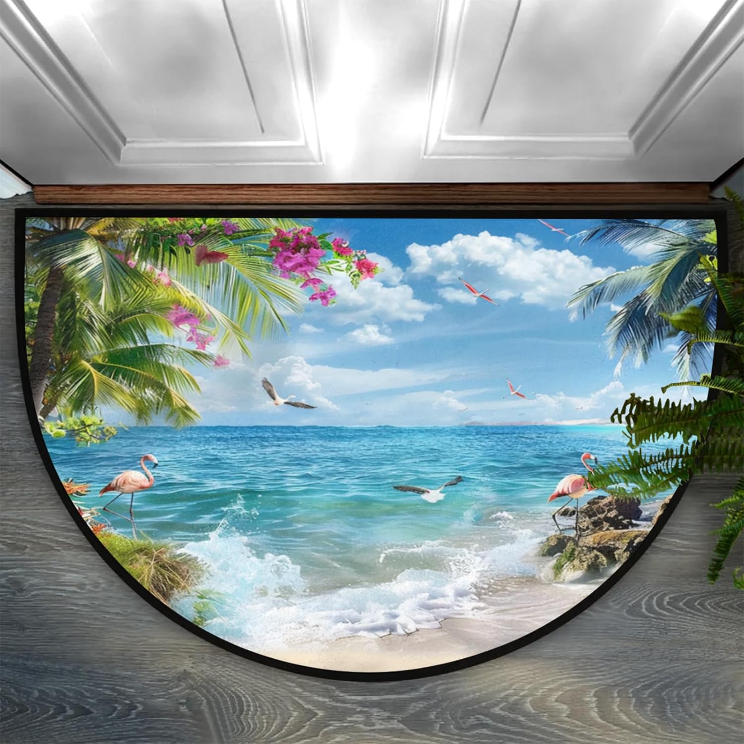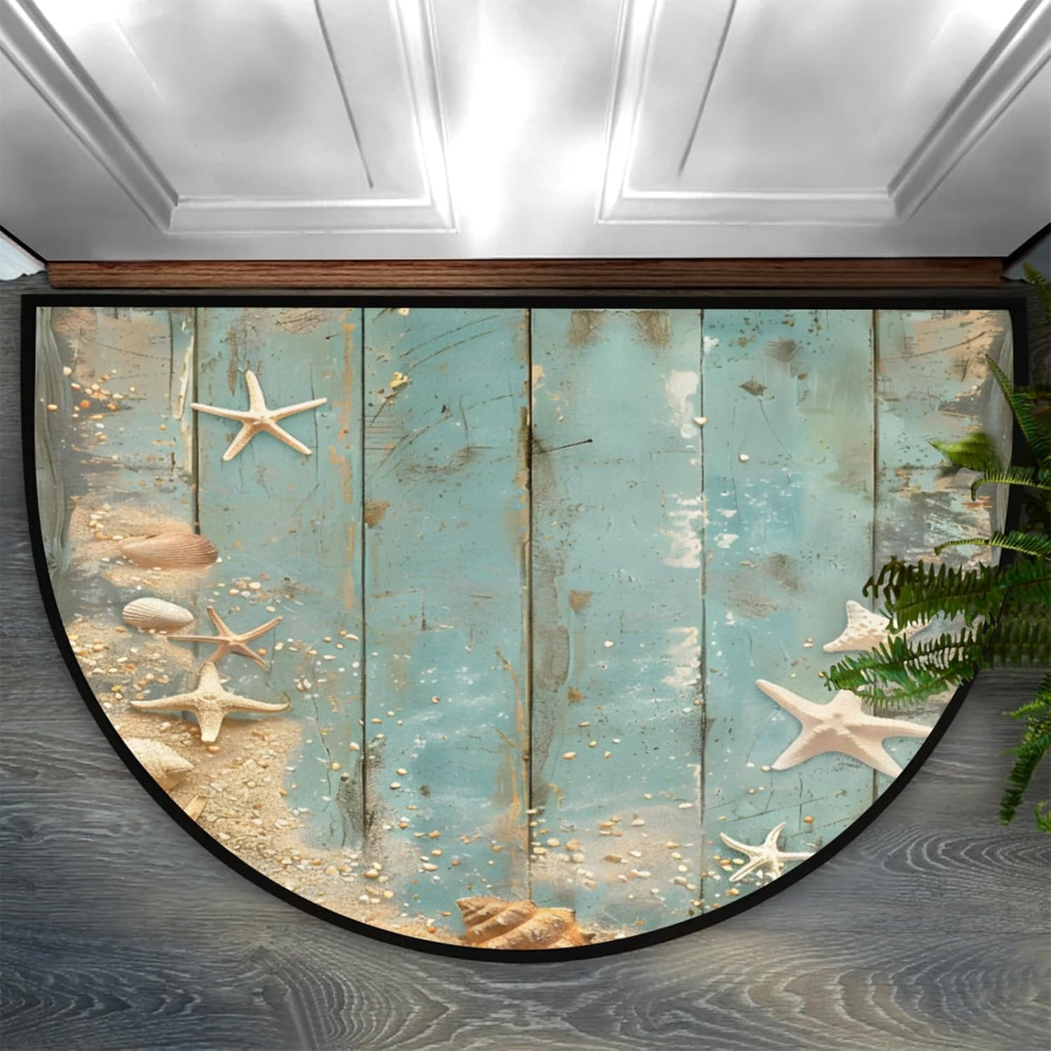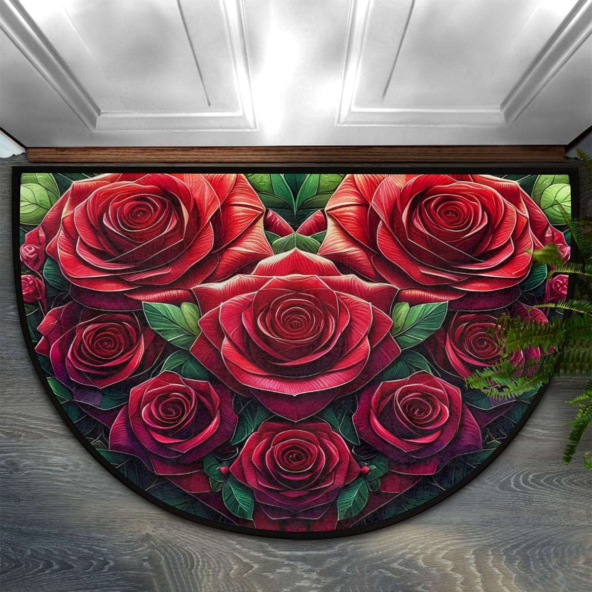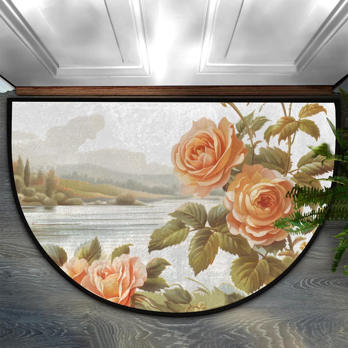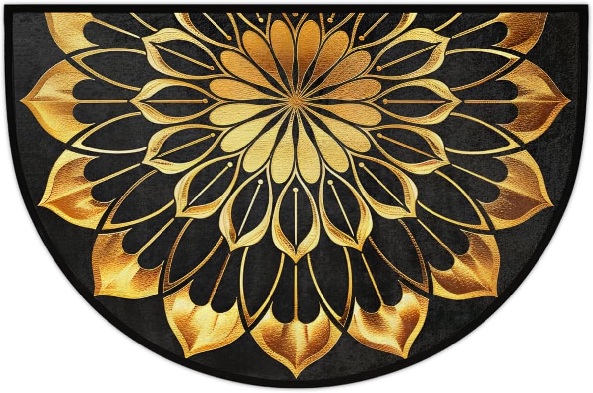 Product Description HALF ROUND DOOR MAT PRODUCT SPECIFICATIONS Size: 36x24n / 91.4x61cm Material: Front side --100% microfiber polyester Backside--non-skid dot plastic Shape: Half Round/Half Circle/Half Moon Package: 1 x Half Round Area Rug Style: Half Area Rug/ Half Round Rug /Half Circle Rug/Half Round Mats Features: -->Half Round Door Mat Absorbent and Durable -->Semi Circle Door Mat Easy to Clean -->Half Moon Doormat Floor Mats Rug Non slip, protect the kids and pets from slipping when they playing or running. -->Half Moon Hearth Rugs Wear-resistant, protect the floor aviod the shoes wearing or scratching. Various Occasions Our half circle area rug are perfect for indoor or outdoor use! Stylish colors and patterns will complement any decor. Indoor, outdoor, kitchen, front door, entrance, lobby, garage, bathroom, store welcome mat or anywhere you see a lot of people. Can be used as plywood mats, Pet mat, dog bowl mat,kitchen mats, bedroom carpets, entrance carpets, food mat, floor mats, anti-fatigue pad applications provide extra comfort in any room and location. Gift Half round doormat colorful and designed entrance mat easy to match home decor, It is also Warm gifts for family and friends on Christmas, Easter, Halloween, Hanukkah, New Year, St. Patrick’s Day, Thanksgiving Day, Valentine’s Day and other holidays. Tips The runner mat is folded to delivery due to the shipping volume limitation, there are lightly crease when you received it, please turn it over where there is a crease, and then slowly pull the carpet back while applying downward pressure on the crease, it will quick recover in few days. Please allow 1-2cm error due to manual measurement, and slight color difference due to computer display.