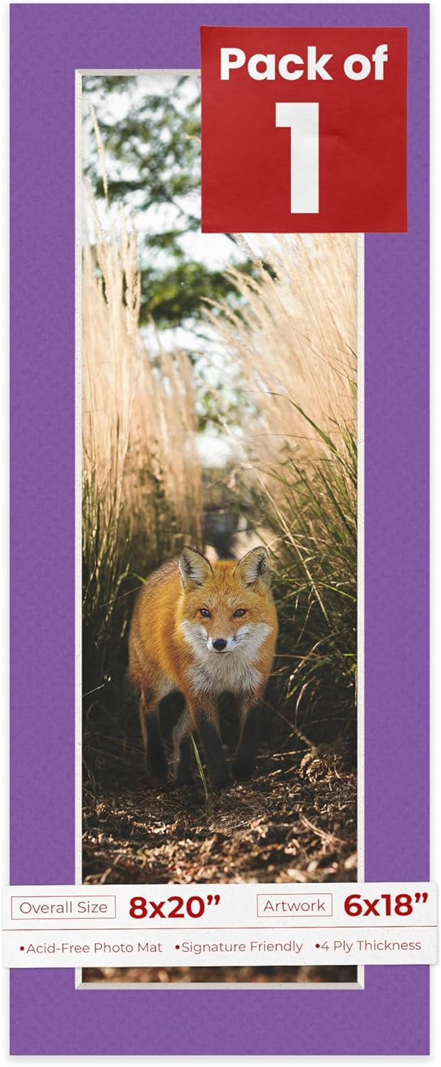 MADE TO DISPLAY a 6x18 Photo and fit in a standard 8x20 Picture Frame. Vibrant Light Purple color Acid Free Picture Matting. Great replacement for damaged, dirty, or faded matting in your old frames.