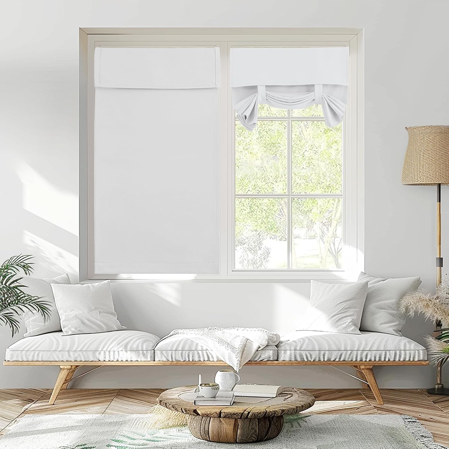 Vatge French Door Curtain - W30 x L70, 1 Panel, Grey, Front Door Window Covering for Privacy, Room Darkening Tie Up Shades, Roll Up Curtain for Patio and Glass Window