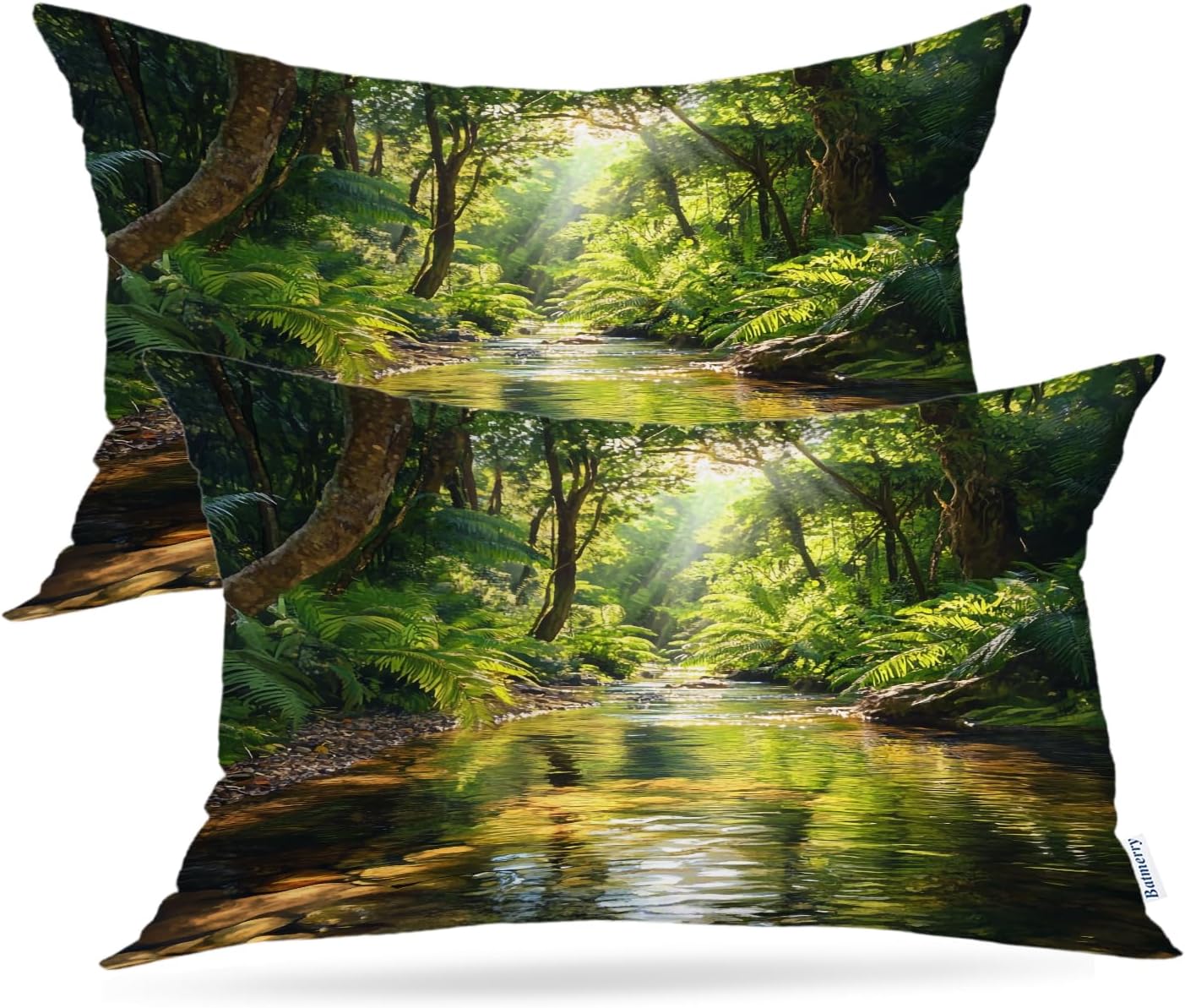 Batmerry Environment Natural Beauty Pillowcases, Sunlit Glade Leafy Canopy Decorative Bed Pillowcases Digital Printing Blended Fabric Bedroom Set Hidden Zipper on Short Side 20X26 in