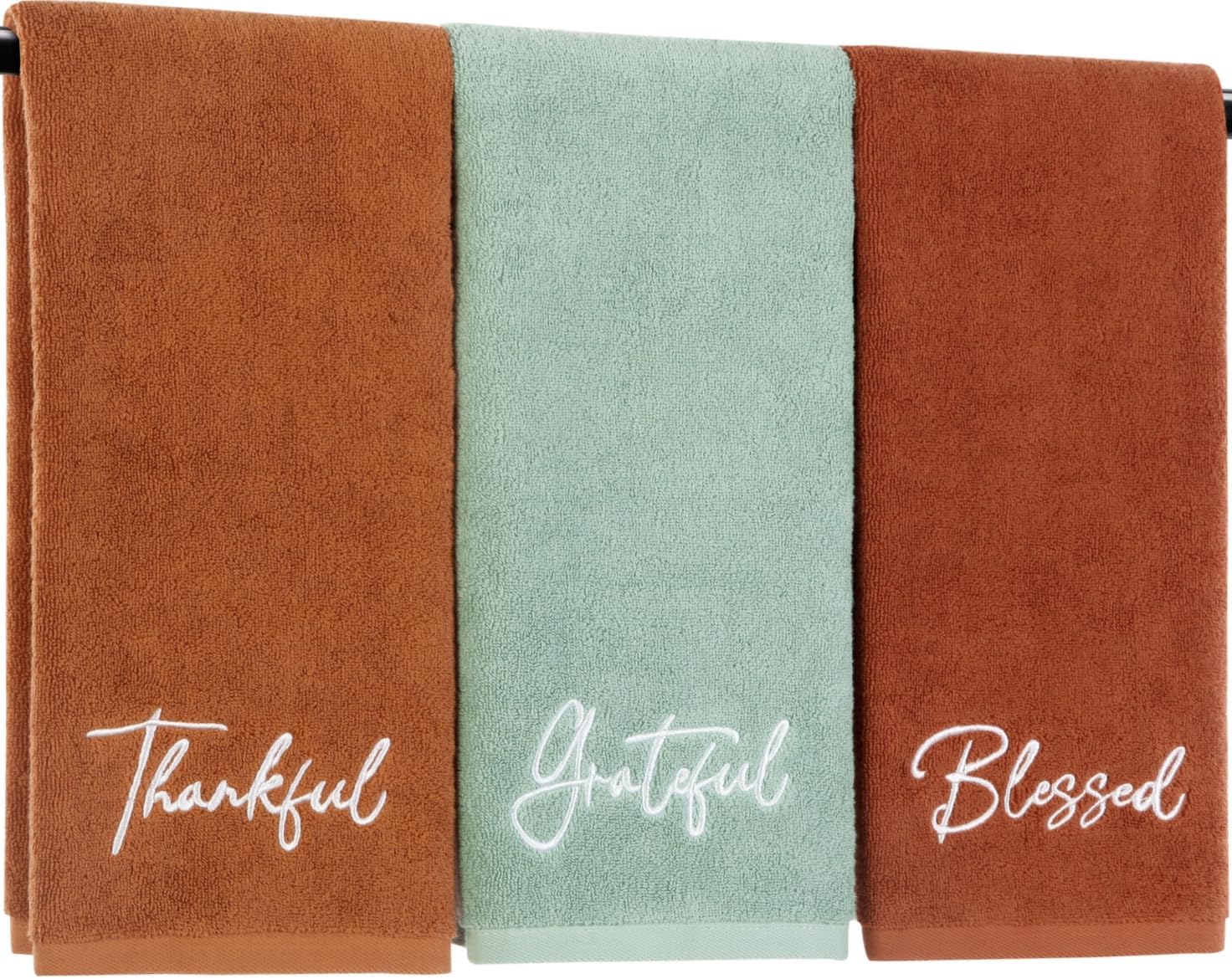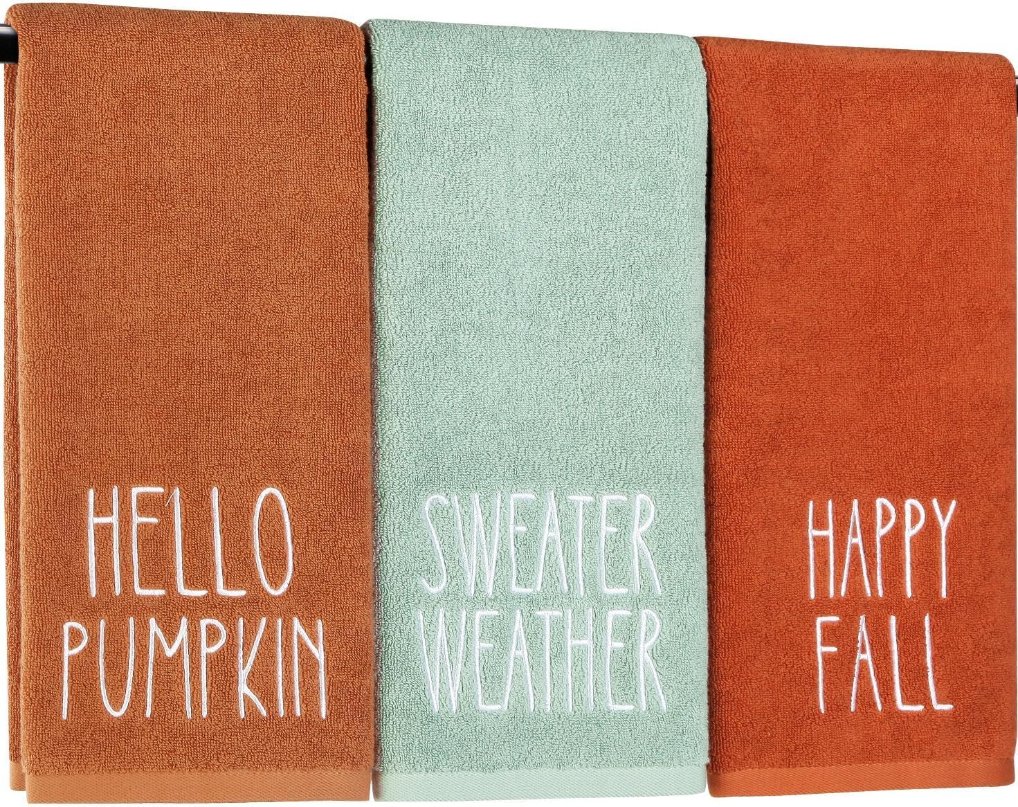 PRODUCT SPECIFICATION ● Size: approx 35 x 75 cm / 13.7 x 29.5 inches (W x L) ● Material: 100% cotton ● Color: Burnt Orange, Brown, Orange, Yellow ● Quantity: 4 pack ● Package includes: 4 x Fall hand towels