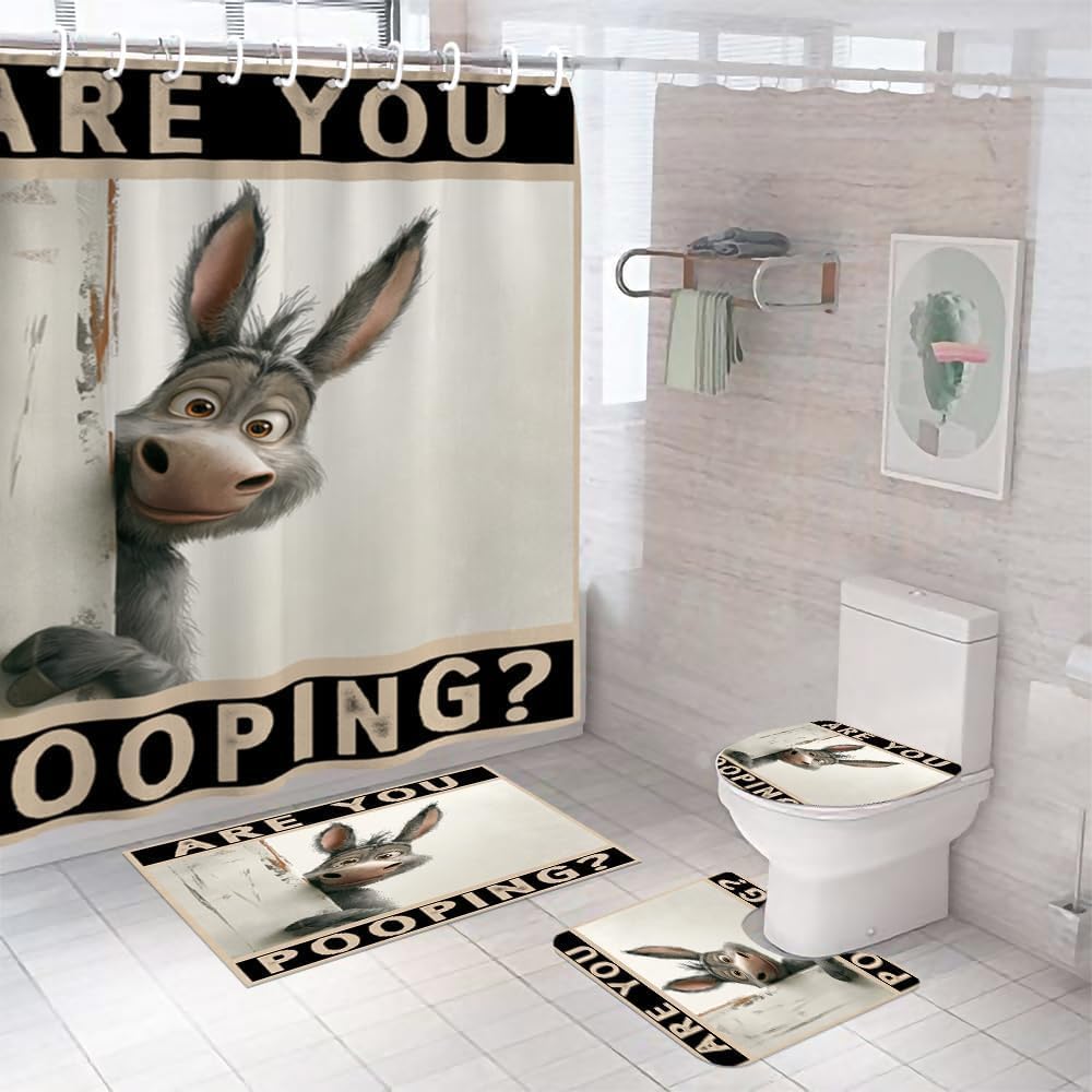 Special prayer shower curtain set perfect for bathroom decroation, it takes you a short time to give you a pleasant bath experience. Give you more strength when you upset! You worth having it! Country farmhouse animal shower curtain made of 100% premium smooth polyester fabric,hand wash or machine wash with gentle detergent. It has a strong waterproof effect,drops of water fell like pearls. Shower curtain prevent water from splashing out of the shower stall or tub. Shower curtain rug select the premium quick air dry fabric ,which feels soft and stroked delicate.Also allow to machine washable and tumble dry low. It is made of water absorbent fabric lining to keep your floor dry and clean. Bathroom rug is constructed with strong and durable rubber backing which helps to prevent shifting and skidding. Rug stay securely in place for long-lasting performance. 12 rust-proof metal buttonholes fit perfectly with plastic hooks,The best choice for the bathroom. Warm Tips: Our rugs toilet mats are folded, packed and shipped, may produce creases during transportation, but it will not affect normal use. You can soak the floor mat and toilet mats in cold water for 5-10 minutes before use, then let it dry so that the crease will disappear. Package Included: 1 × Waterproof Fabric Shower Curtain,1× Bathroom Mat,1 × Toilet Lid Cover,1 × Soft U Shape Rug,12 × Strong Hooks.