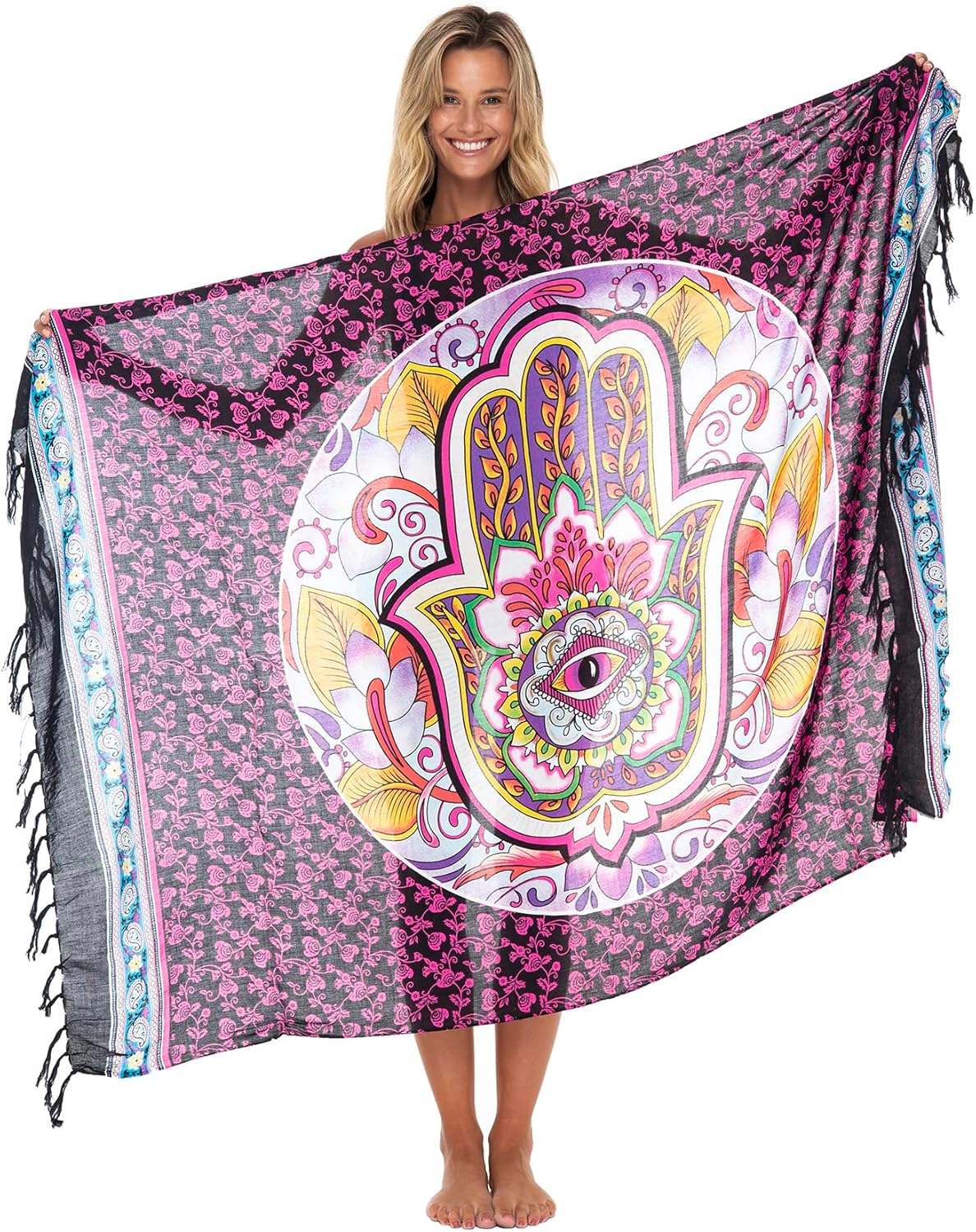 EASY TO WEAR, EASY TO PACK. This vibrantly colored sarong will bring your outfit to life. Whether you’re staying cool on a warm summer day or on a tropical vacation, you'll want to add this trendy Evil Eye sarong to your wardrobe. Also makes a fun beach blanket, tablecloth, even a colorful wall hanging