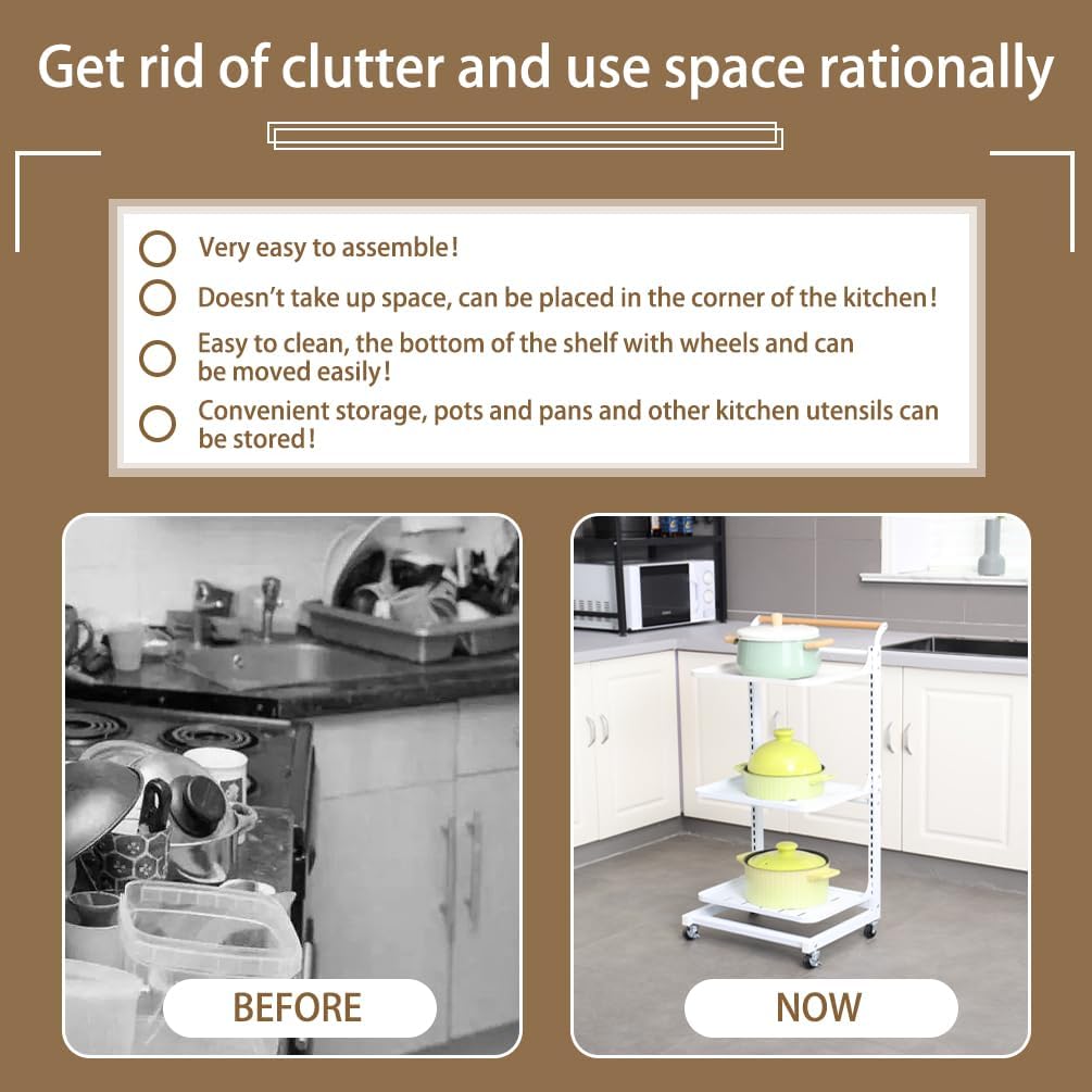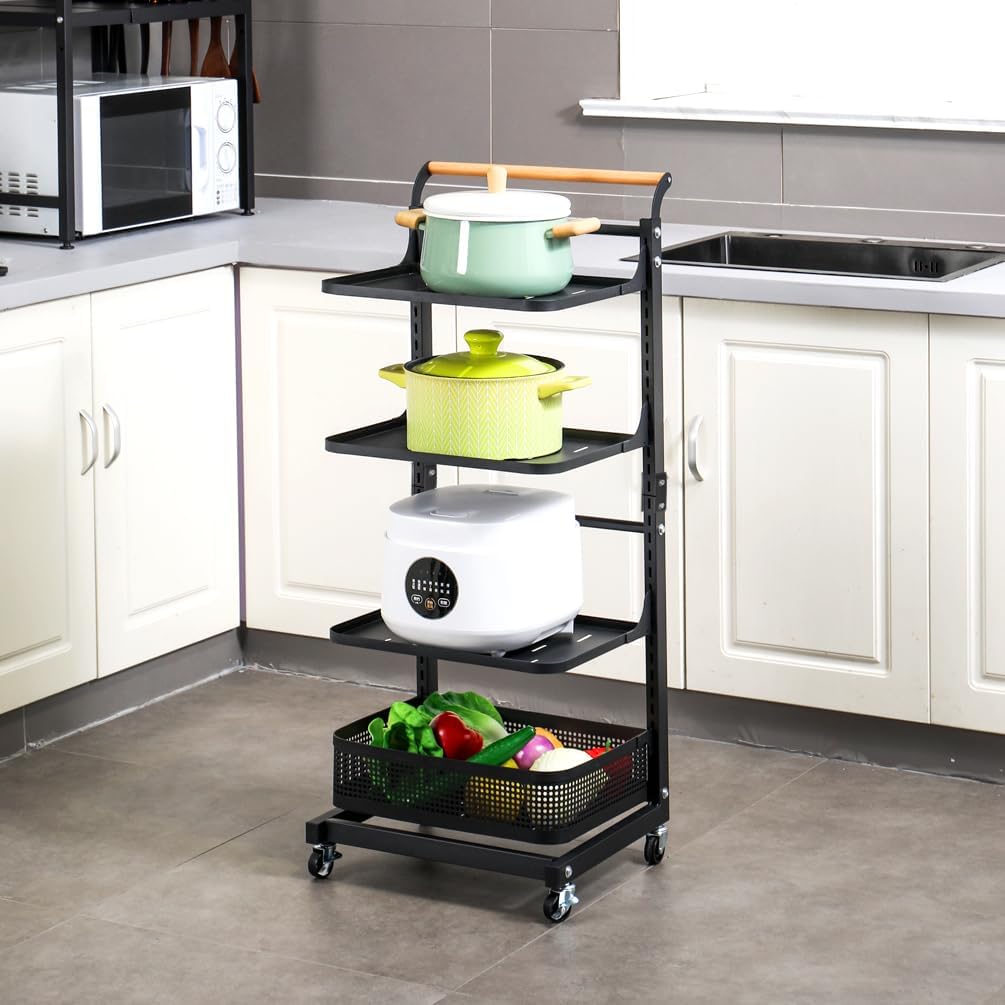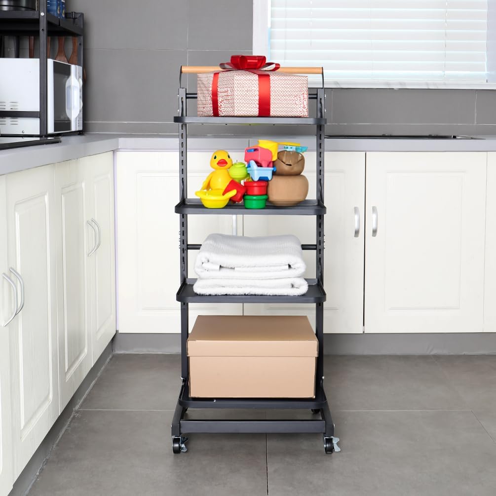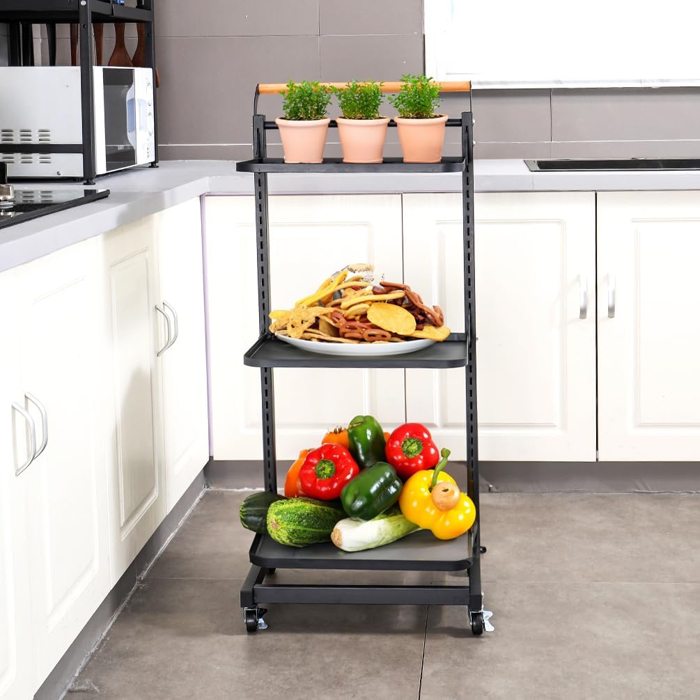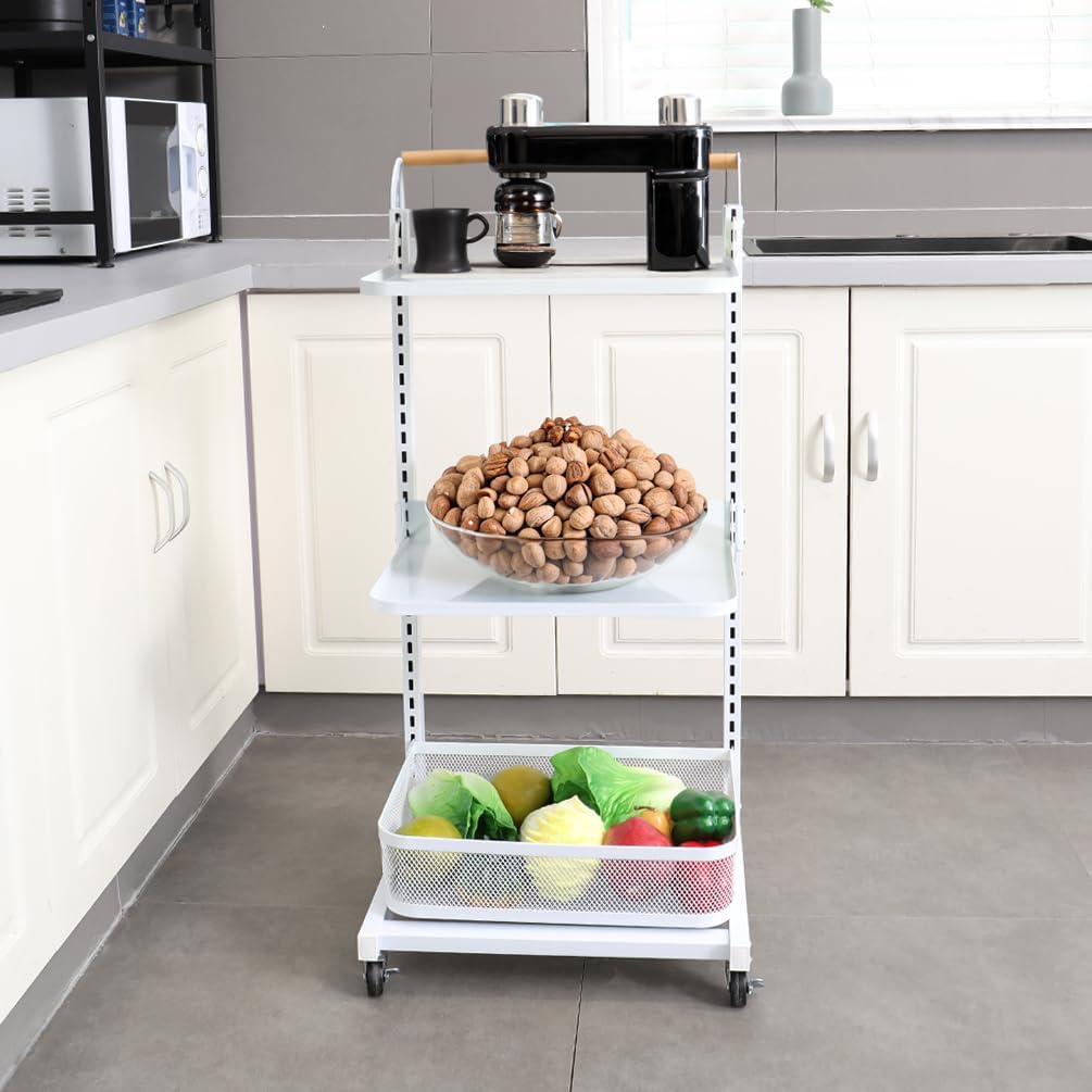 Material: Iron with Plastic Spraying + Wooden Handle Color: White / Black Size Approx.: 3 Tier (3 Plates)----Entire Size: 40.5 x 33 x 78cm/ 15.94'' x 12.99'' x 30.7'' 3 Tier (2 Plates + 1 Basket)----Entire Size: 40.5 x 33 x 78cm/ 15.94'' x 12.99'' x 30.7'' 4 Tier (4 Plates)----Entire Size: 40.5 x 33 x 100cm/ 15.94'' x 12.99'' x 39.37'' 4 Tier (3 Plates + 1 Basket)----Entire Size: 40.5 x 33 x 100cm/ 15.94'' x 12.99'' x 39.37'' 4 Tier (2 Plates + 2 Baskets)----Entire Size: 40.5 x 33 x 100cm/ 15.94'' x 12.99'' x 39.37'' 4 Tier (2 Plates + 1 Basket + 1 Compartment Basket )----Entire Size: 40.5 x 33 x 100cm/ 15.94'' x 12.99'' x 39.37'' 5 Tier (5 Plates)----Entire Size: 40.5 x 33 x 122cm/ 15.94'' x 12.99'' x 48.03'' Plate Size: 38.3 x 27.2 x 1.5cm/ 15.07'' x 10.7'' x 0.59'' Bottom Basket Size: 38.3 x 28.2 x 10.1cm/ 15.07'' x 11.1'' x 3.97'' Compartment Basket Size: 38.7 x 27.7 x 10.2cm/ 15.23'' x 10.9'' x 4.01'' Package Included: 1x Rolling Storage Cart Note: 1.Please allow 1-2cm error due to manual measurement. Please make sure you do not mind before you bid. 2.The colors may have different as the difference display, please understand.