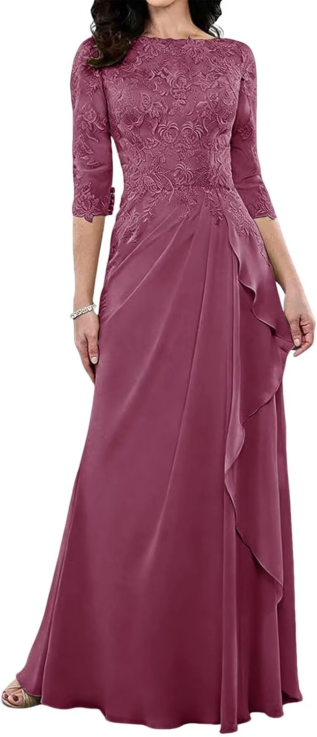 Mother of the Bride Dresses Long Evening Formal Dress 3/4 Sleeve Lace Applique Ruffles Plus Size Women'sItem DescriptionGender:Womens,Teens/Teenager GirlsFabric:High Quality Lace and ChiffonFeatures:A Line,Scoop,3/4 Sleeve,Lace Applique,Ruffles,Pleated/Ruched,Full/Floor Length,Zipper Back,Built-in BraCustomized ServicesCustomized Size and Color are also available,detailed measurements as follows:A.Bust _____ inchB.Waist _____ inchC.Hips _____ inchD.Hollow to floor(Without Shoes)______inchE.Height(Without Shoes)______inchF.Shoulder to Shoulder______inchG.Height of Shoes(Shoe Heel)______inchH.The date you need the dress_____