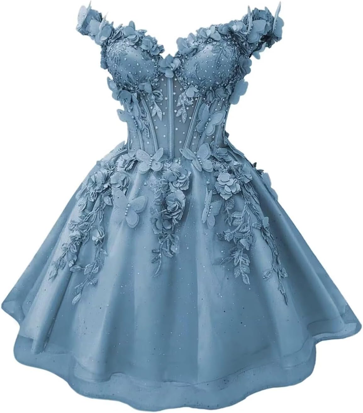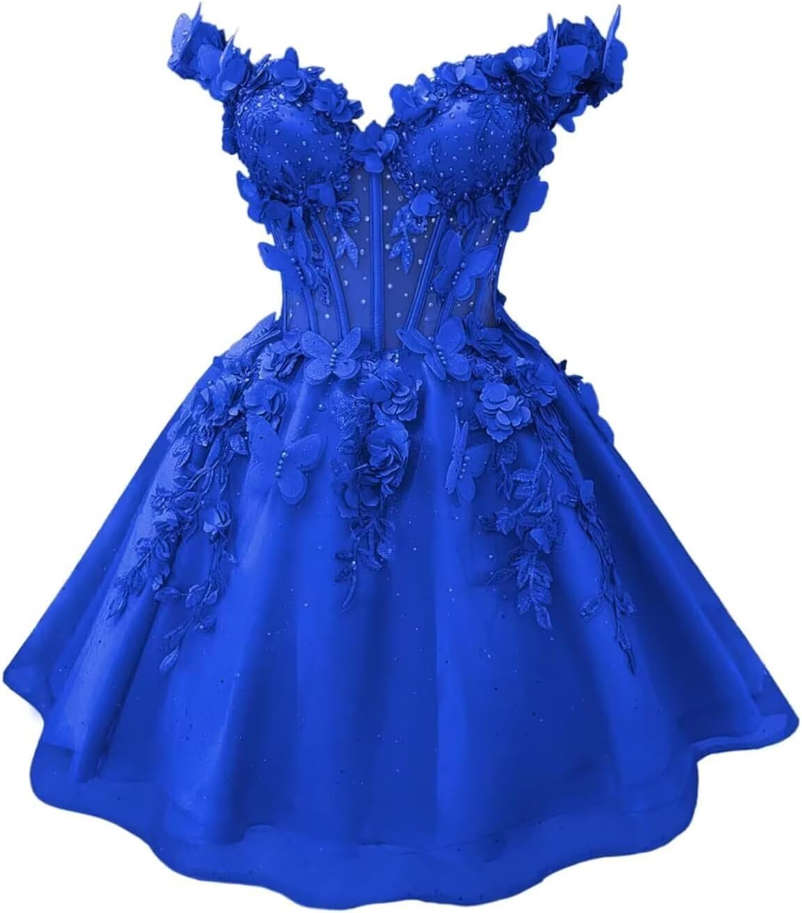 | Embellishment Feature | 3D Butterfly Homecoming Dress, 3D Flower Homecoming Dress, Lace Appliques Homecoming Dress, Off The Shoulder Homecoming Dress |