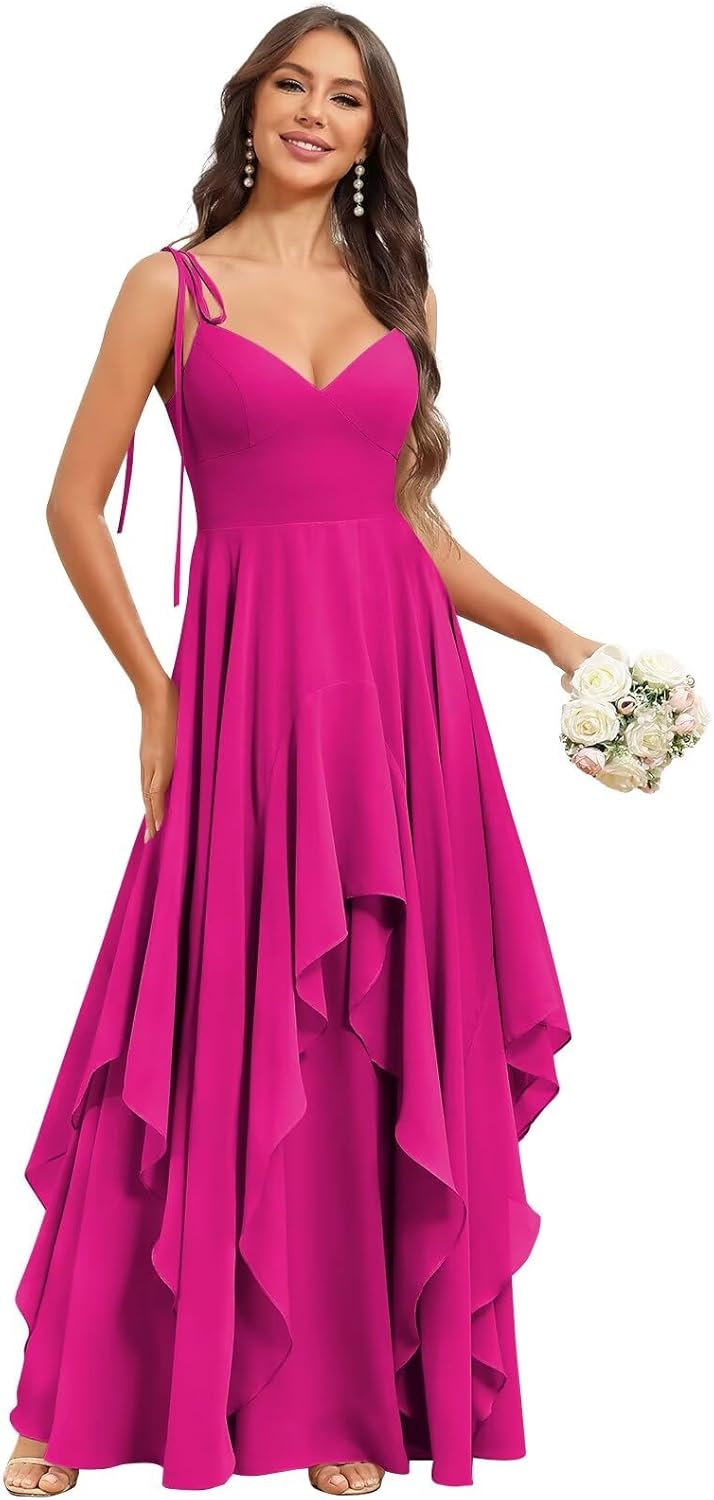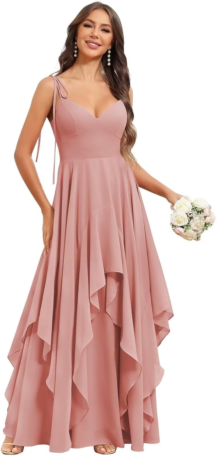 Fabric:Chiffon Neckline: V Neck,Spaghetti Strap Silhouette: A Line Feature: V Neck ,A Line,Sleeveless,Ruffles, Pleated,Side Slit,Bow Tie Back, Keyhole,Built-in Bra Back: Open Back ,Backless,Corset , Lace Up Closure Occasion: Long Chiffon Bridesmaid Dress,Evening Party Dress,Pageant Dresses, Wedding Guest Dress,Midi Dress , Maxi Gown ,Cocktail Party Gown , Graduation Dress,Other Formal Party Dress If you want to custom the long satin bridesmaid dress, please complete the format when you place the order. 1. Full Bust _____ cm 2. Waist _____ cm 3. Hips _____ cm 4. Hollow to hem ___ cm 5. Natural height:_____cm 6. High Heels_____cm 7. Phone Number______ 8. The date you need the dress_____ For the urgent order,please email us by amazon before placing order to ensure you can get it on time.