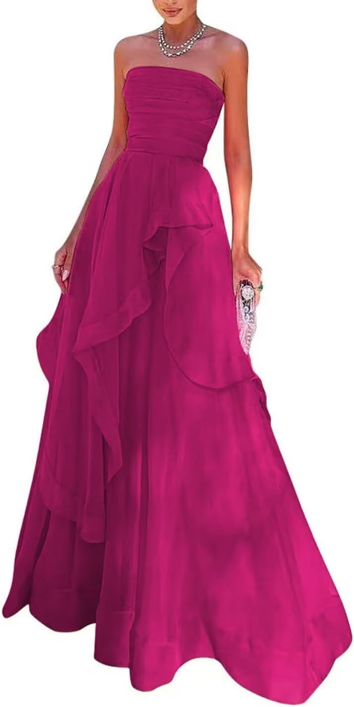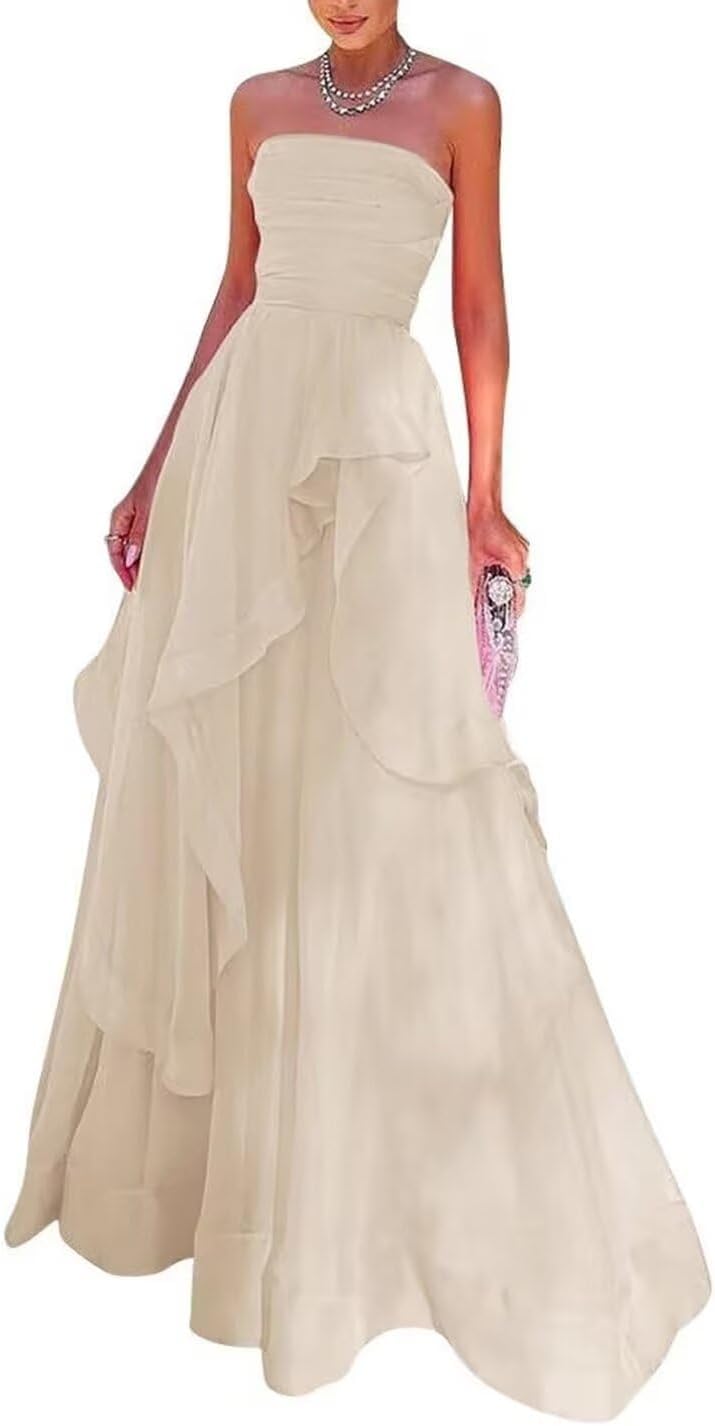 | Pattern | Strapless, A-line skirt, ruffles |