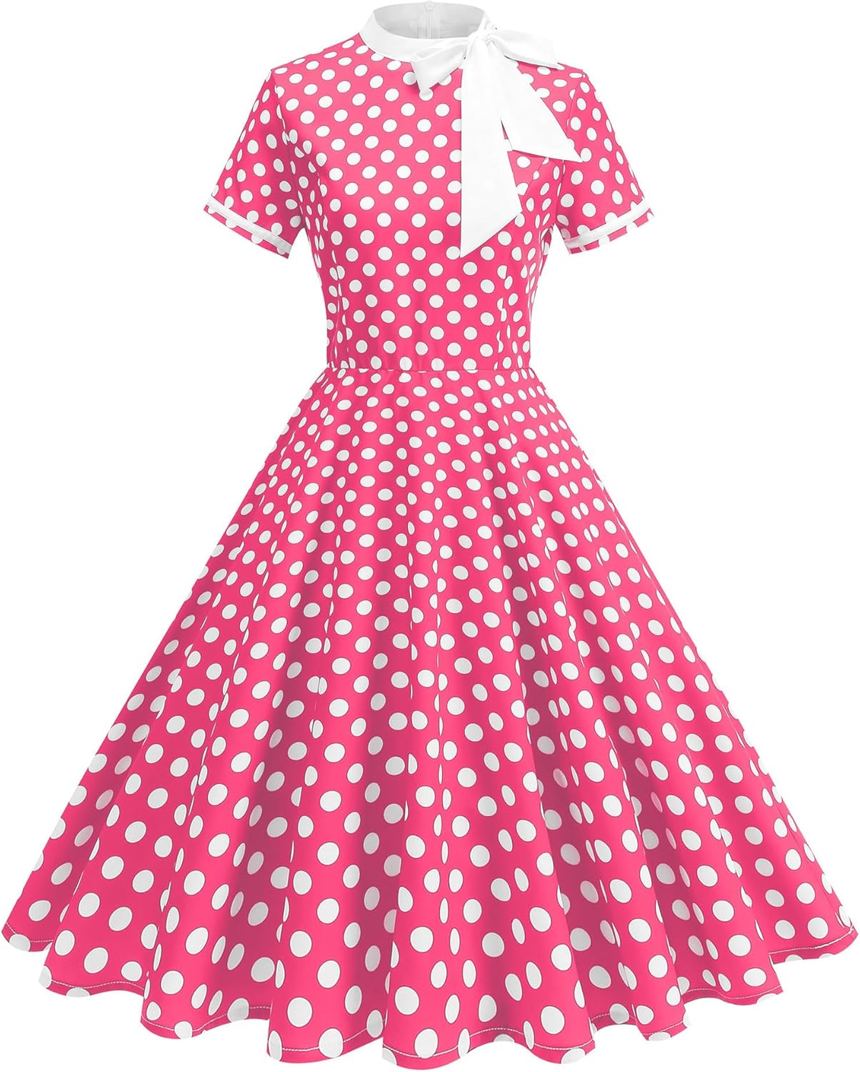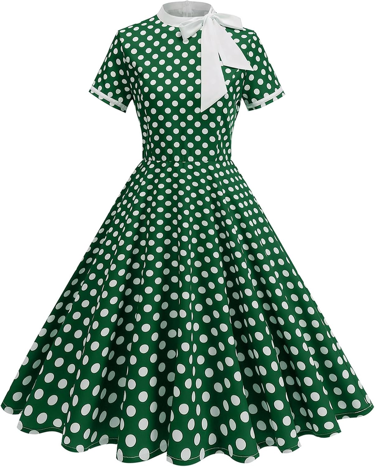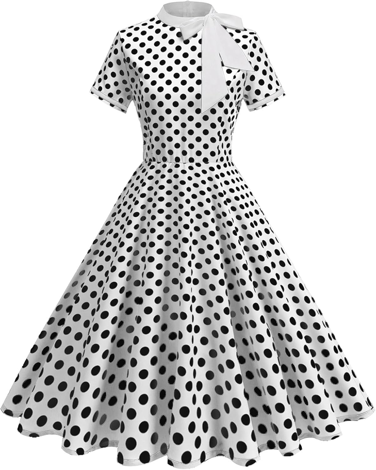 Condition: New with TagsPackage Include: 1PC DressSize: S-XXLColor: As the pictures shownMaterial: 100% PolyesterFeatures: Short Sleeve, Tie Neck, Collect Waist, Invisible Back Zipper, Polka Dot, Swing StyleGender: WomenWomen's 1950s Retro Dress Short Sleeve Tie Neck Polka Dot Swing Dress Cocktail DressCare Instructions: Hand wash with cold water, iron on low heat, no bleach, line dry.Size Chart:Please allow slight 1-3cm difference due to manual measurement and refer to the details to choose the suitable size.Tag No.S: Bust: 35.0" / 88cm; Waist: 26.0" / 66cm; Dress Length: 41.0" / 103cmTag No.M: Bust: 36.0" / 92cm; Waist: 28.0" / 70cm; Dress Length: 41.0" / 104cmTag No.L: Bust: 39.0" / 98cm; Waist: 30.0" / 76cm; Dress Length: 41.0" / 105cmTag No.XL: Bust: 41.0" / 104cm; Waist: 32.0" / 82cm; Dress Length: 42.0" / 106cmTag No.XXL: Bust: 43.0" / 110cm; Waist: 35.0" / 88cm; Dress Length: 42.0" / 107cm;Friendly Tips: Photo color might be a little different from the actual product due to color display of different monitors.