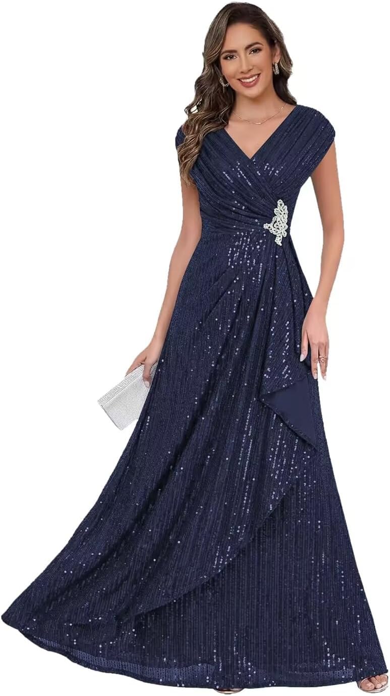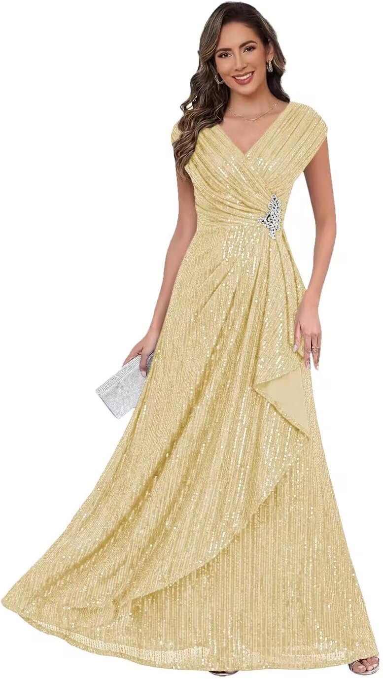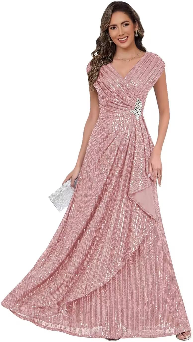 | Occasion Type | a line elegant mother of groom and bride dresses, cap sleeve holiday ceremony wedding elegant dress, cap sleeve sequin prom dress with split, sparkly floor length mother of the bride dress, v neck sequin formal evening party dress |