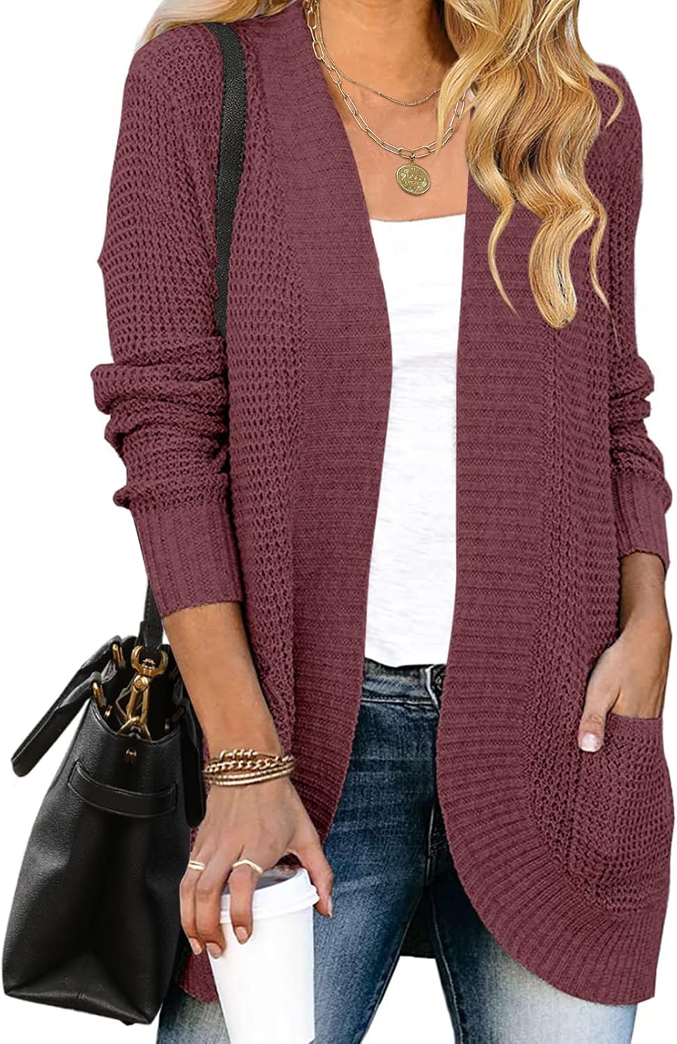 MEROKEETY Womens Long Sleeve Open Front Cardigans Chunky Knit Draped Sweaters Outwear