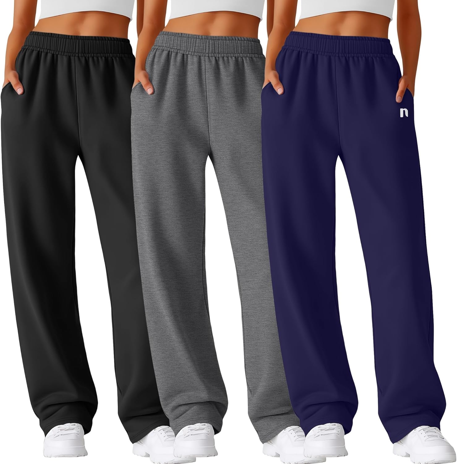 Features: These straight leg sweatpants for women are ideal for lazy weekends at home, quick trips to the grocery store, casual walks in the park, or even light workout sessions. Their comfortable fit and versatile style make them a good choice for any relaxed or active occasion. Our open bottom sweatpants for women are available in different sizes: Small, Medium, Large, X-Large, XX-Large. To find the suitable and comfortable size for you, we recommend that you check our size chart before ordering. Material: 95% Polyester, 5% Spandex Package includes: 3 X Womens Wide Leg Sweatpants Notes: Manual measurement, please allow slight errors on size. The color may exist a slight difference due to different screen displays