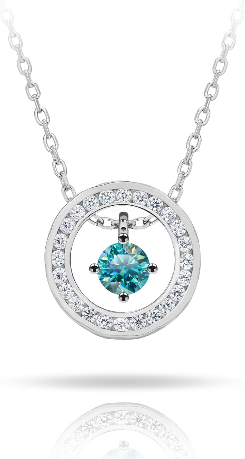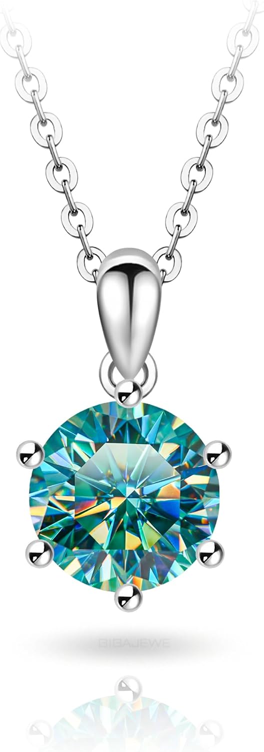 GIGAJEWE Blue Green Color Moissanite Pendant Necklace Princess Cut Moissanite Pendant Necklace 7mm 2.0ct,18K Gold Plated 925 Steling Silver, Pendant Necklace For Women