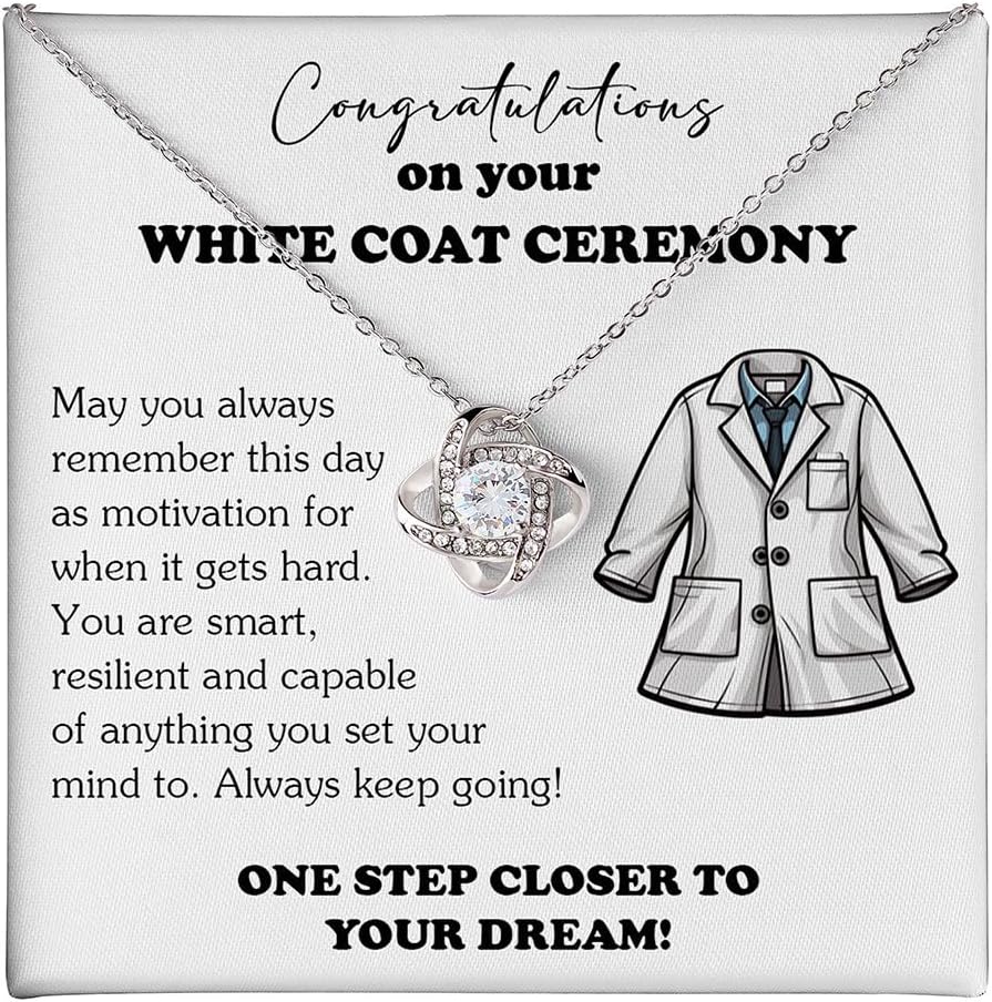 🎓Celebrate one of the most meaningful milestones in a future healthcare professional’s life with our White Coat Ceremony Gift Necklace. ✨Thoughtfully designed for aspiring doctors, nurses, dentists, pharmacists, veterinarians, and chiropractors, this elegant piece of jewelry symbolizes the passion, sacrifice, and dedication it takes to serve others. 🎁Each necklace comes with a custom message card, available in various heartfelt designs, and is packaged in a luxury gift box – perfect for presenting on graduation day, white coat ceremony, or medical school acceptance. 💖Whether you’re a parent, friend, or loved one, this necklace is a beautiful way to say "I'm proud of you" and celebrate her incredible journey into the healthcare field.