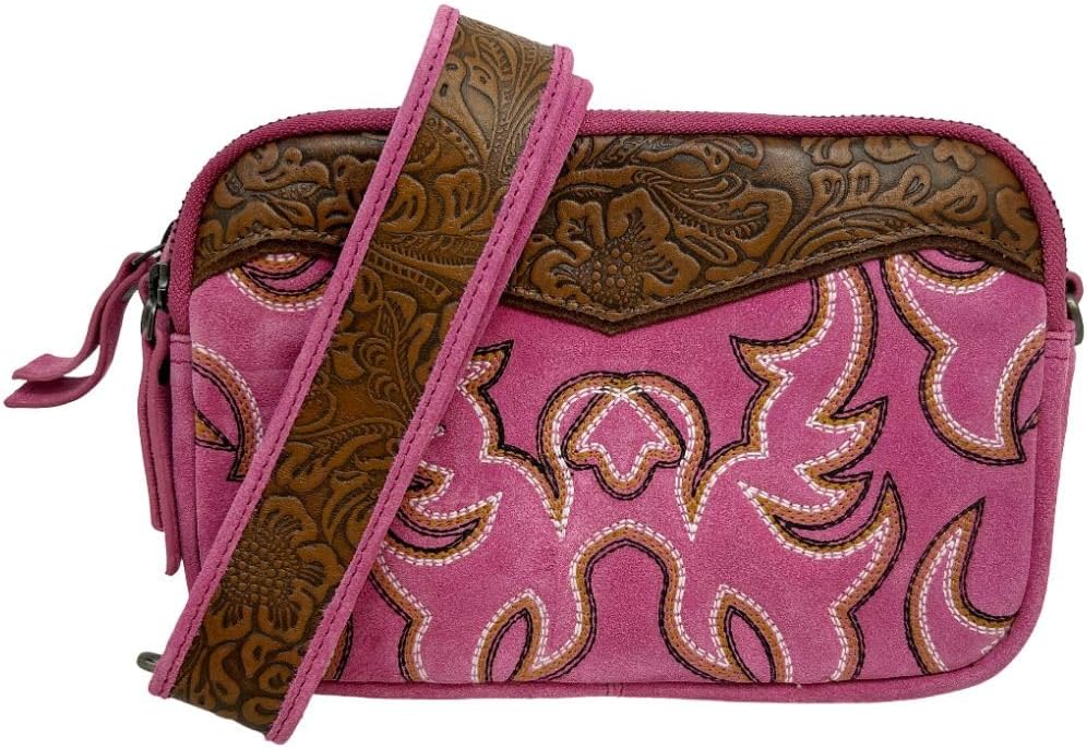 Make a bold statement with this vibrant western shoulder bag, designed to add a lively pop of color to any outfit. Featuring intricate country-style embroidery and leather accents, this boho purse blends southwestern flair with everyday function. Measuring 8.5"L x 5.5"H x 3.5"W, this compact yet spacious bag holds all your essentials. It includes an interior zipper pocket for added organization and a convenient exterior zipper pocket for quick access to your most-used items. The 22" adjustable strap allows you to wear it as a shoulder bag or crossbody, offering hands-free comfort wherever your day takes you. Ideal for festivals, casual outings, or everyday errands, this western crossbody bag brings style and versatility wherever it goes.