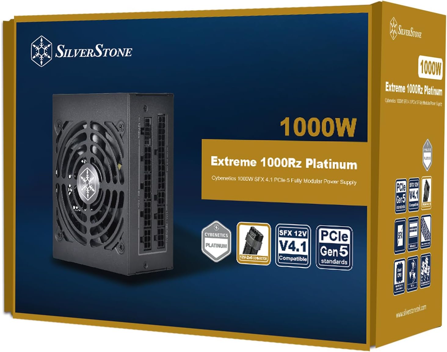 The Extreme 1000Rz Platinum is Silverstone's 2025 addition to its Extreme series of SFX power supplies. This unit stands out as SilverStone's highest output model yet in standard sized SFX form factor. It is compliant with the SFX12V 4.1 standard, which is equivalent to the ATX 3.1 standard, features a PCIe Gen5 12V-2x6 connector. With a maximum output of 1000W and a power density of 1260.8W per liter, the Extreme 1000Rz Platinum offers an exceptional wattage capacity, making it an ideal choice for providing a steady and reliable flow of power for overclocking or handling unexpected power peaks for high-end graphics cards in Small Form Factor (SFF) ecosystems. To ensure efficient cooling, the Extreme 1000Rz Platinum has a 92mm FDB (Fluid Dynamic Bearing) fan. The semi-fanless switch button feature enables users to strike a balance between cooling performance and operational-induced noise levels. This allows for quiet operation during lower power loads while providing adequate cooling during heavy usage scenarios. In conclusion, the SilverStone Extreme 1000Rz Platinum stands as a remarkable addition to the Extreme series line. Its impressive wattage capacity, adherence to the latest standards, innovative design features, and high-quality components make it an excellent choice for enthusiasts and professionals in need of a powerful and reliable power supply solution for their SFF systems.