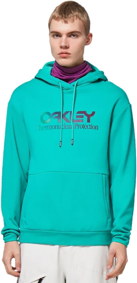 With a dynamic TNP logo print and superior water-repellent properties, the Rider Long 2.0 Hoodie keeps you in your “comfort zone”- and then some. A hoodie with adjustable drawcord and elastic cuff and hem repel chilly temps, and front zippered pockets help secure essentials. It’s finished with an iconic Oakley Thermonuclear Protection logo across the chest.