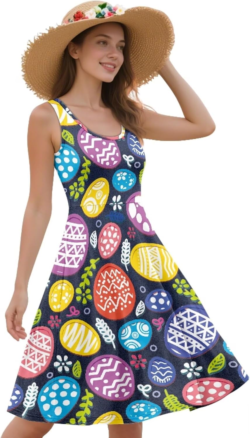 Material:Made of high quality polyester fabric,lightweight and comfortable,elastic when wearing Features:Vest dress,sleeveless,knee length,round neck Size:XS, S, M, L, XL, 2XL, 3XL, 4XL. please refer to our size chart before purchase Suitable for Occasions:Suitable for any occasions, such as parties, beaches, clubs, holidays, weddings, picnics, camping, home, birthdays, Sports, Prom etc Purchase Note: Due to different shooting environments,the actual color of women's clothing may be slightly different from the picture