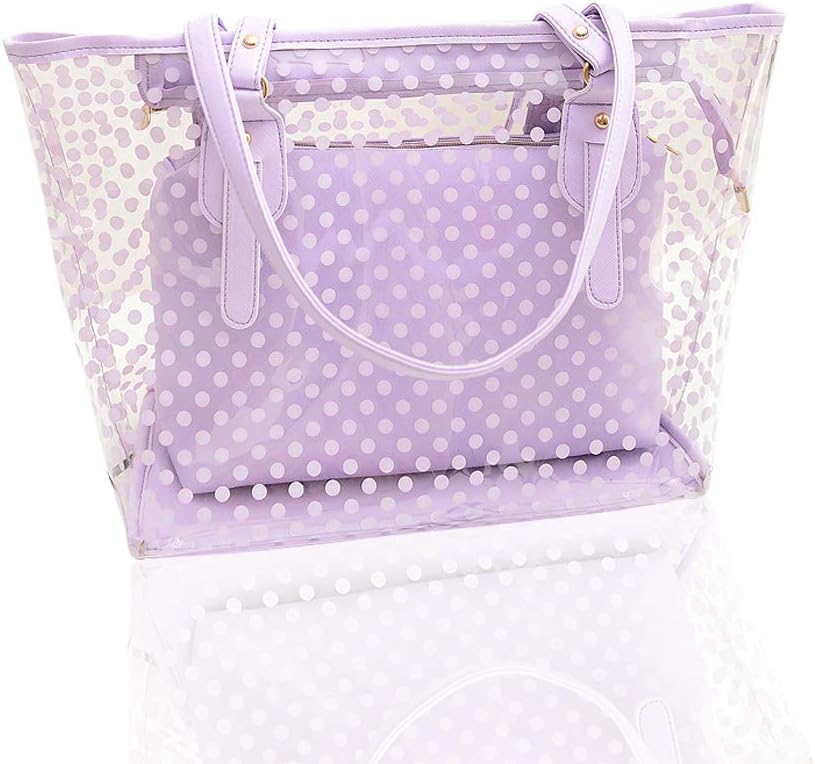 This Beach Tote bag fitted with a matching pure color bag inside to hide personal importance items, such as makeup, phone, card, wallet and so on. The see through design make you easy to locate the stuff inside, let your life, at that moment, is just a little easier. If you wish to catch everyone’s attention and stand out, this stylish and fun clear PVC bag is a must have for you.