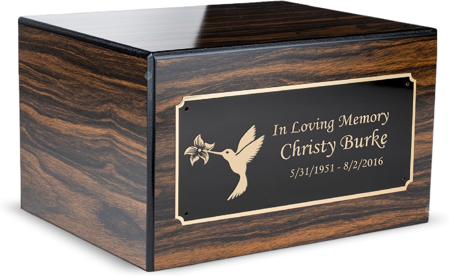 | Included Components | Custom Engraved Brass Plate, urn box |
