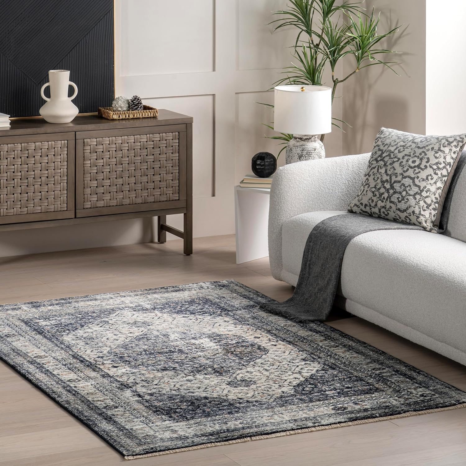 Introducing the nuLOOM Charvi Distressed Medallion Fringe Area Rug, from our exquisite collection of rugs, meticulously crafted for you. Whether you're searching for the perfect rugs for the living room, bedroom, or nursery, our diverse range is designed to meet your every need. Enhance the heart of your home with our stunning living room rugs. Our living room area rugs provide comfort underfoot while seamlessly integrating with your décor. Choose from modern rugs, large area rugs, or small rugs to suit the dimensions of your space. Our living room carpets add warmth and style, creating a cozy haven for relaxation. Create a serene atmosphere in your bedroom with our bedroom rugs. From small area rugs to large bedroom rugs, we offer an array of options to complement your personal style. This 10x14 rug is a versatile option that adds style to areas such as entryways, living rooms, bedrooms, or home offices. Experience the plush comfort of our bedroom carpets, ensuring a soft landing for your feet every morning. Elevate your space with a modern area rug or indulge in the timeless charm of classic designs. Explore our collection of large area rugs, perfect for creating a focal point in any room. So, whether you're on the hunt for cheap rugs, a large area rug for your living room, or a chic bedroom carpet, this nuLOOM rug is a great choice. Make a bold statement with big rugs that exude style and elegance. Discover budget-friendly options in our clearance rugs selection, ensuring you find the perfect room rugs without breaking the bank. Our cheap rugs maintain the same high quality and style you expect, making redecorating your living spaces an affordable delight. Transform your home with our area rugs, designed to reflect your unique taste and enhance the comfort of your home. Embrace the perfect blend of form and function with our living room rugs, bedroom carpets, nursery rugs, and more. Elevate your surroundings with our diverse rug collection today.