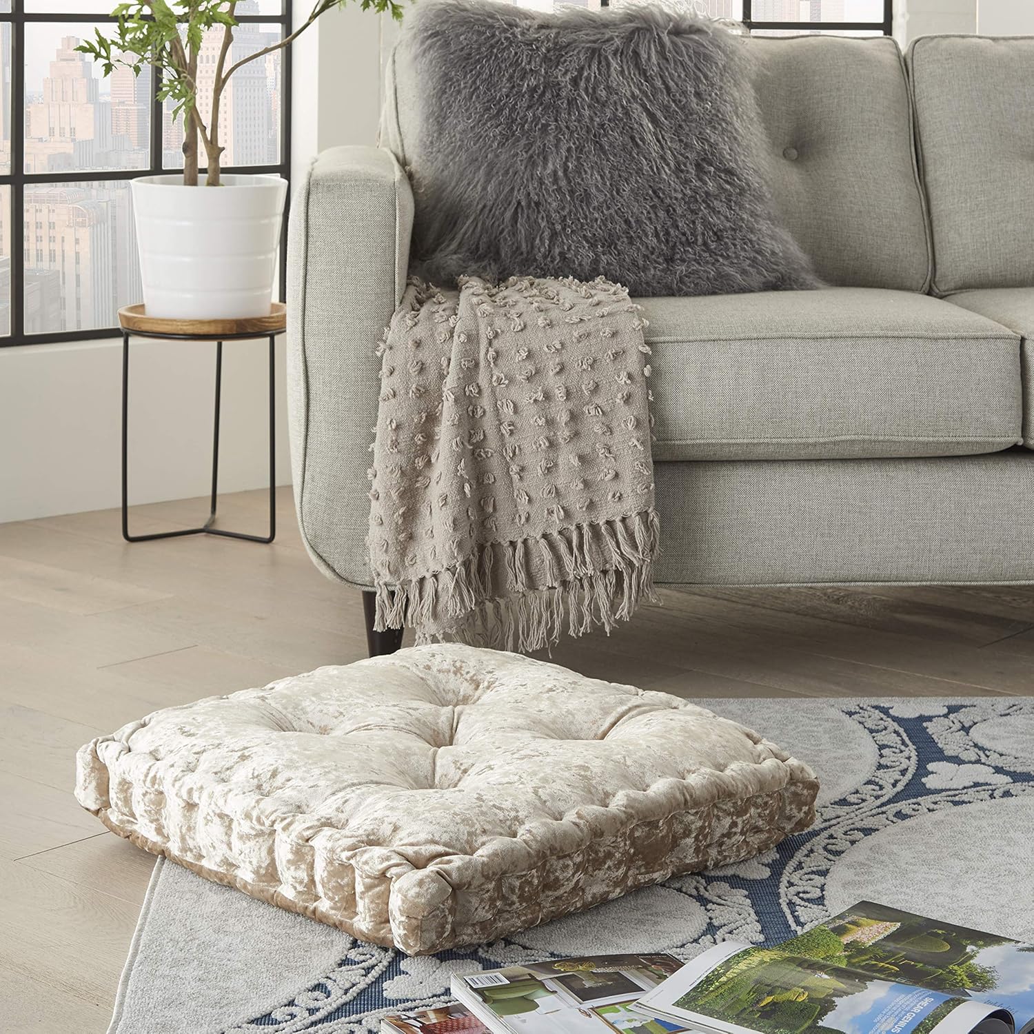 A fabulous range of exotic pillows, poufs, rugs, and blankets to suit a variety of lifestyles. Including clever cheery designs on natural jute fabric, fun and funky international expressions, bold floral and abstract patterns, and sophisticated textured motifs. Relax in the comfort of this Mina Victory Home Accents seat cushion. Stuffed with plush polyester and wrapped in luxe lilac poly-velvet, this classic tufted cushion will easily become a staple for your floor or chair seating. Combine several to make a larger seating area, or mix and match between our other available colors and sizes for an extra cozy lounge area! This handade design is a versatile fit for glam, modern, and boho decor. 24-inch x 24-inch x 4-inch size.